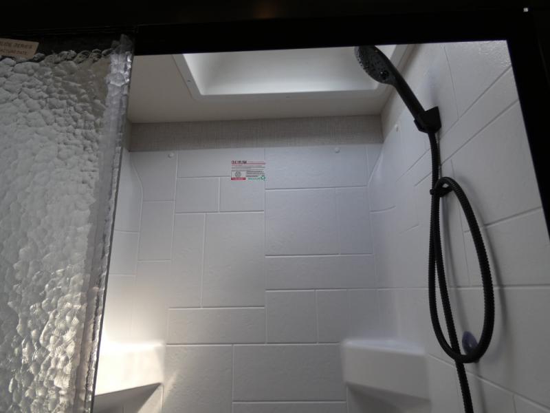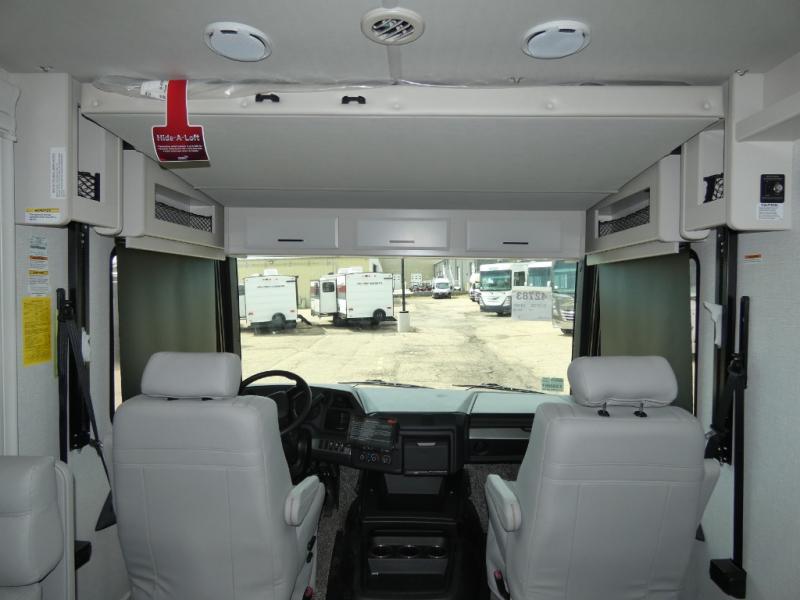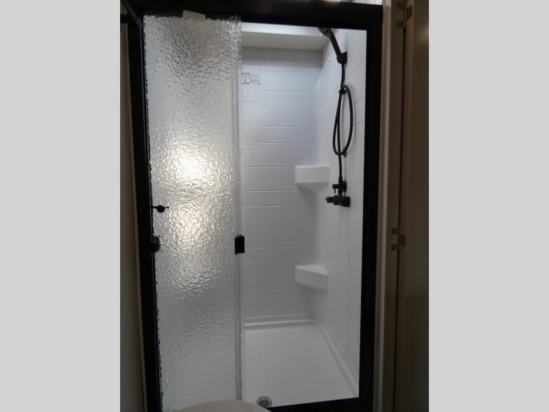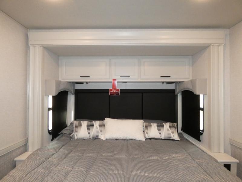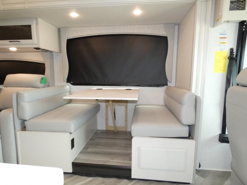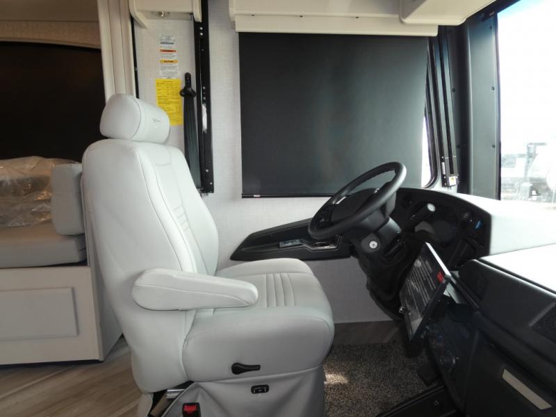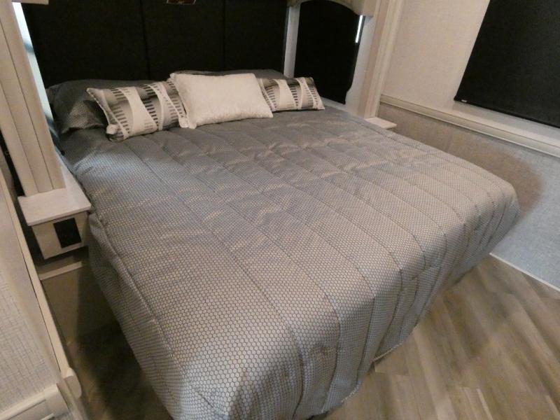 The Fleetwood Fortis Class A gas motorhome is a powerhouse of luxury and convenience, and it also is quite literally a powerhouse with its Ford 7.3L V8 335HP engine with 468 LB/FT of torque. The construction includes a Dryseal edge coating for all ceilings, walls, and floor, and the Powerlock System 2 has interlocking walls to the roof for stability. Automatic hydraulic leveling jacks make the set-up process easier, and the cab has excellent features, like a 9" stereo with AM/FM/Bluetooth, backup camera, reclining/swivel cab seats, driver/passenger center table, and an automotive-style dash with dual monitors and workstation. You will find vinyl tile flooring all throughout the interior, as well as full-extension drawer guides with latches, coordinating window treatments, and energy-efficient LED flush-mount ceiling lighting.