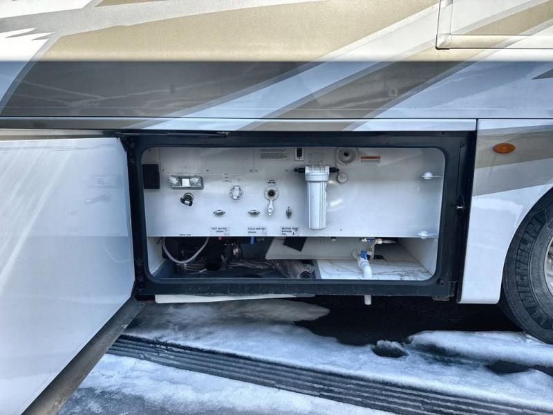 The Fleetwood RV Frontier GTX Class A diesel motorhome is built on a Freightliner custom chassis featuring V-Ride technology and a Freedom Sport foundation. The Cummins 6.7L diesel engine provides plenty of power to get you where you need to go. An exterior service station includes an exterior shower, city water hookup, water pump switch, and towel holder. The full coverage heavy duty undercoating, the vacu-bond aluminum framed constructed sidewalls, roof, and floor, and the painted steel frame chassis construction is sure to hold up for years to come. Heads will turn down the highway when they see the premium gel exterior Vetrosina fiberglass skin. Come find your favorite one today!