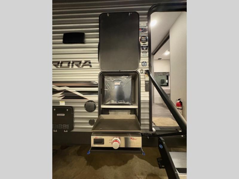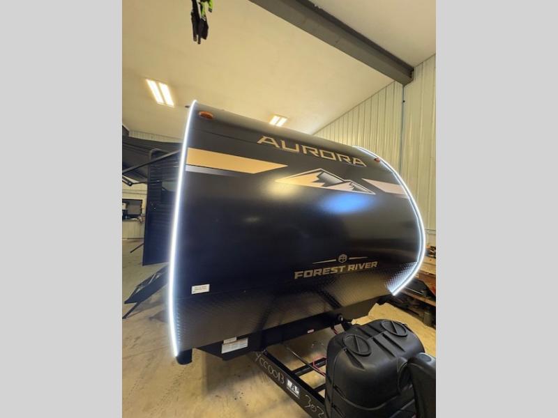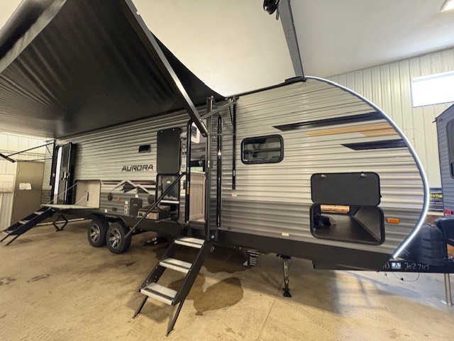 Comfortability, usability, and quality is what you will find in each one of these Forest River Aurora travel trailers, toy haulers or destination trailers! They are designed with a superior build and packed full with industry leading, functional, and distinctive standard features. SolidStep entrance steps and a Safe-T rail door assist on main entry door to help you safely enter and exit the unit. The diamond plate rock guard will protect your unit from road debris and the nitrogen filled radial tires, which keep their pressure longer, offer better fuel economy. You will also find upgraded JBL Elite exterior speakers outside, an electric awning with multicolor lights and remote, plus flush mount baggage doors for easy packing. The interiors are beautifully designed with a deep undermount farm style sink, stainless steel appliances, and linoleum flooring in the slide outs which will be easy to clean. Come find your favorite model today!