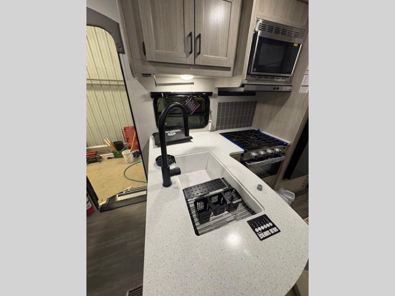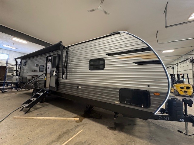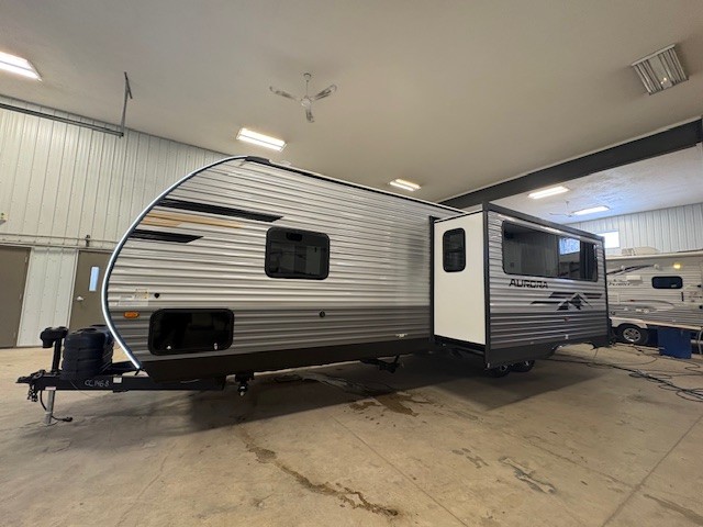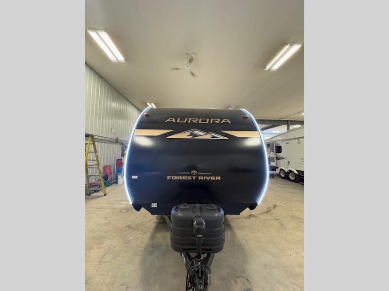 Comfortability, usability, and quality is what you will find in each one of these Forest River Aurora travel trailers, toy haulers or destination trailers! They are designed with a superior build and packed full with industry leading, functional, and distinctive standard features. SolidStep entrance steps and a Safe-T rail door assist on main entry door to help you safely enter and exit the unit. The diamond plate rock guard will protect your unit from road debris and the nitrogen filled radial tires, which keep their pressure longer, offer better fuel economy. You will also find upgraded JBL Elite exterior speakers outside, an electric awning with multicolor lights and remote, plus flush mount baggage doors for easy packing. The interiors are beautifully designed with a deep undermount farm style sink, stainless steel appliances, and linoleum flooring in the slide outs which will be easy to clean. Come find your favorite model today!