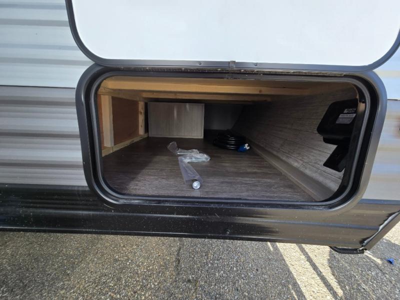 Comfortability, usability, and quality is what you will find in each one of these Forest River Aurora Light travel trailers! They are designed with a superior build and packed full with industry leading, functional, and distinctive standard features. The diamond plate rock guard will protect your unit from road debris and the nitrogen filled radial tires, which keep their pressure longer, offer better fuel economy. You will also find upgraded JBL Elite exterior speaker outside, an electric awning with multicolor lights and remote, plus flush mount baggage doors for easy packing. The interiors are beautifully designed with matte black kitchen and bath faucets, black nightshades in the living room, and GE kitchen appliances!