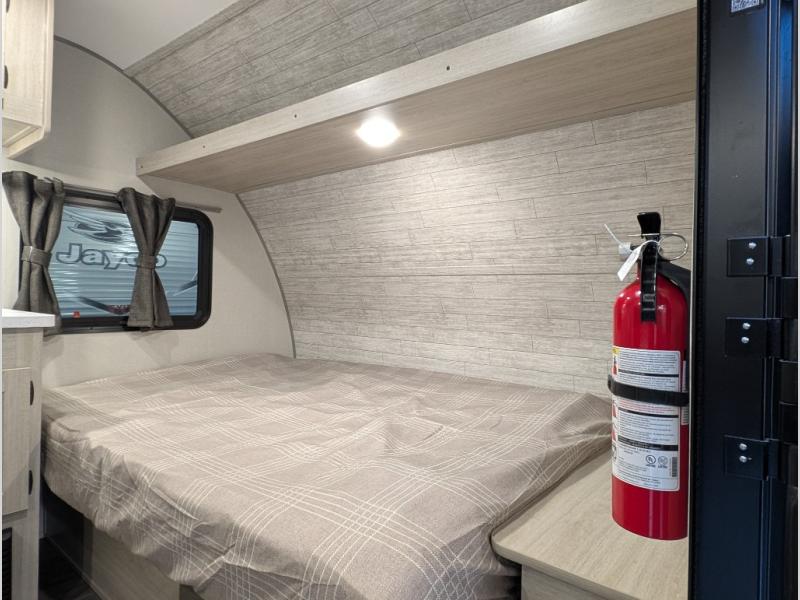 This lightweight travel trailer includes everything you need for comfortable camping trips at the lake. You can make your meals on the two burner cooktop or in the stainless steel microwave, and a 3.3 cu. ft. 12V refrigerator will keep leftovers fresh. A front queen bed provides a great night's rest, and there is a 29" booth dinette that will double as both dining and additional sleeping space. And a private bath with a 24" x 32" shower and toilet will let you easily freshen up without having to use the camp's facilities!