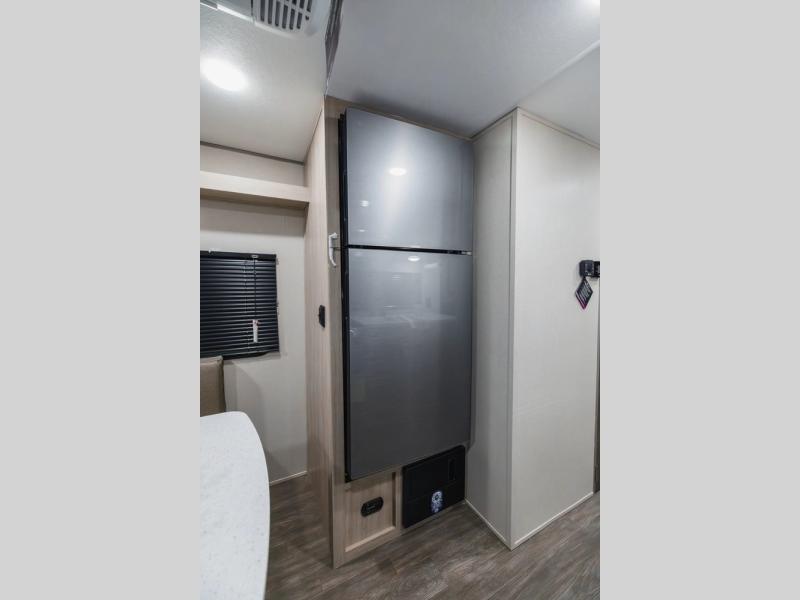 Comfortability, usability, and quality is what you will find in each one of these Forest River Aurora Light travel trailers! They are designed with a superior build and packed full with industry leading, functional, and distinctive standard features. The diamond plate rock guard will protect your unit from road debris and the nitrogen filled radial tires, which keep their pressure longer, offer better fuel economy. You will also find upgraded JBL Elite exterior speaker outside, an electric awning with multicolor lights and remote, plus flush mount baggage doors for easy packing. The interiors are beautifully designed with matte black kitchen and bath faucets, black nightshades in the living room, and GE kitchen appliances!