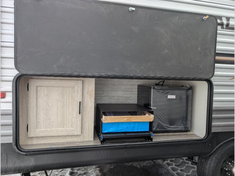 Comfortability, usability, and quality is what you will find in each one of these Forest River Aurora Light travel trailers! They are designed with a superior build and packed full with industry leading, functional, and distinctive standard features. The diamond plate rock guard will protect your unit from road debris and the nitrogen filled radial tires, which keep their pressure longer, offer better fuel economy. You will also find upgraded JBL Elite exterior speaker outside, an electric awning with multicolor lights and remote, plus flush mount baggage doors for easy packing. The interiors are beautifully designed with matte black kitchen and bath faucets, black nightshades in the living room, and GE kitchen appliances!