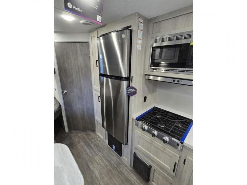 Comfortability, usability, and quality is what you will find in each one of these Forest River Aurora Light travel trailers! They are designed with a superior build and packed full with industry leading, functional, and distinctive standard features. The diamond plate rock guard will protect your unit from road debris and the nitrogen filled radial tires, which keep their pressure longer, offer better fuel economy. You will also find upgraded JBL Elite exterior speaker outside, an electric awning with multicolor lights and remote, plus flush mount baggage doors for easy packing. The interiors are beautifully designed with matte black kitchen and bath faucets, black nightshades in the living room, and GE kitchen appliances!