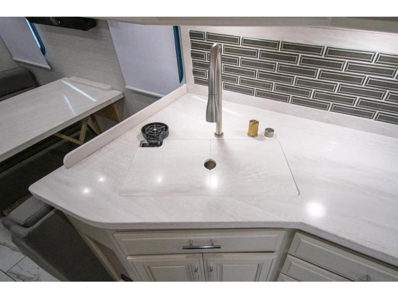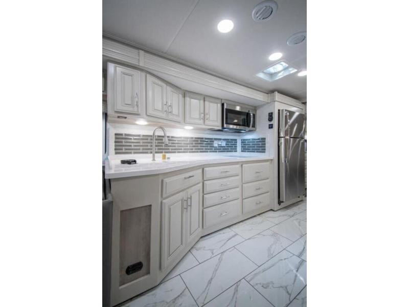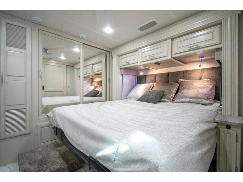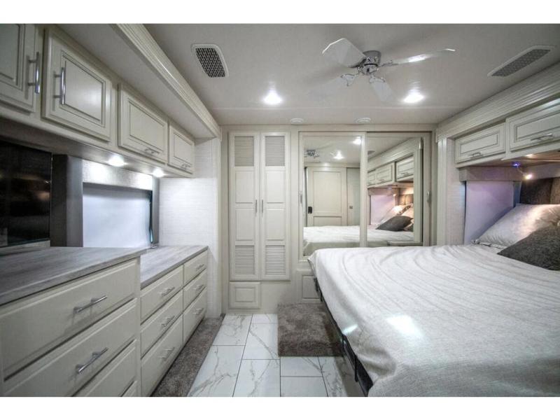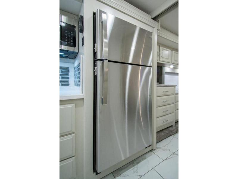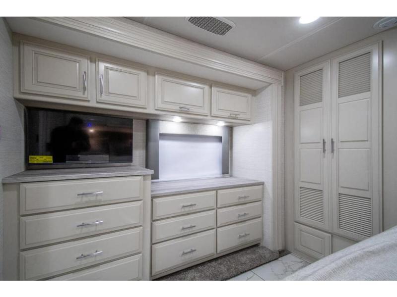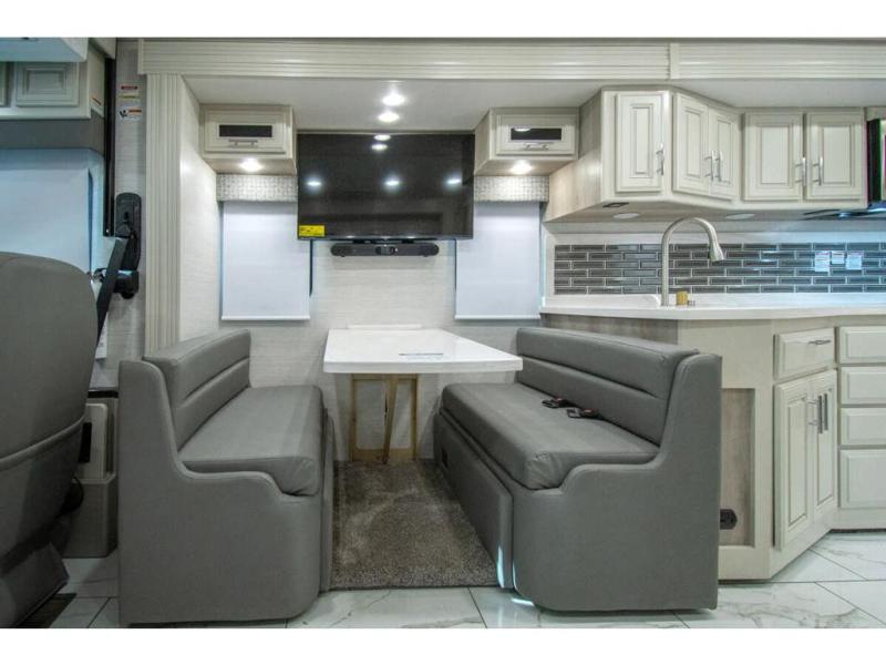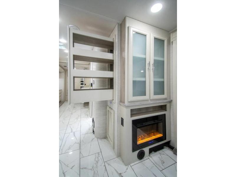 Fall in love with adventure when you travel in this triple slide out coach. Your crew can relax on the sofa slide out, or at the soft touch Dream booth dinette that includes storage underneath. You will enjoy the 43" LED TV across from the sofa, plus there is a 32" overhead TV as well. The fireplace makes this area feel even more like home! The kitchen includes everything you would find at home, including a 30" over-the-range convection microwave, a two burner electric induction cooktop, plus a double door residential refrigerator. You and your spouse will have the rear private bedroom all to yourselves with a slide out Tilt-A-View king bed, a large wardrobe, plus a dresser and a 32" LED TV. And a stackable washer and dryer makes wash day easy as 1-2-3!