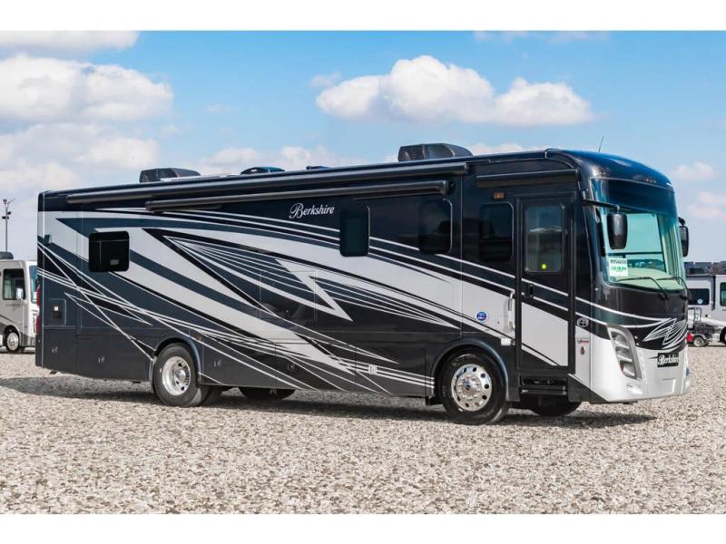 Experience the luxury and power behind the Berkshire Class A diesel motorhome by Forest River. Each model includes a Cummins ISB turbo diesel 6.7 liter, 360 HP engine that sits on a Freightliner XCR raised-rail chassis. The Allison 3000MH 6-speed transmission and V-Series front/rear suspension will provide an exceptional driving experience, and the exterior full-body paint features five different choices for maximum eye appeal. Each Berkshire is constructed with a vacuum bonded roof, sidewalls, and floors, an aluminum tube frame, and a Tru-Brace Anti Camber chassis support system for a motorhome that will last for years to come. Each model also includes a "soft touch" padded ceiling, manual day/night shades, polished porcelain tile throughout, and many more interior comforts!