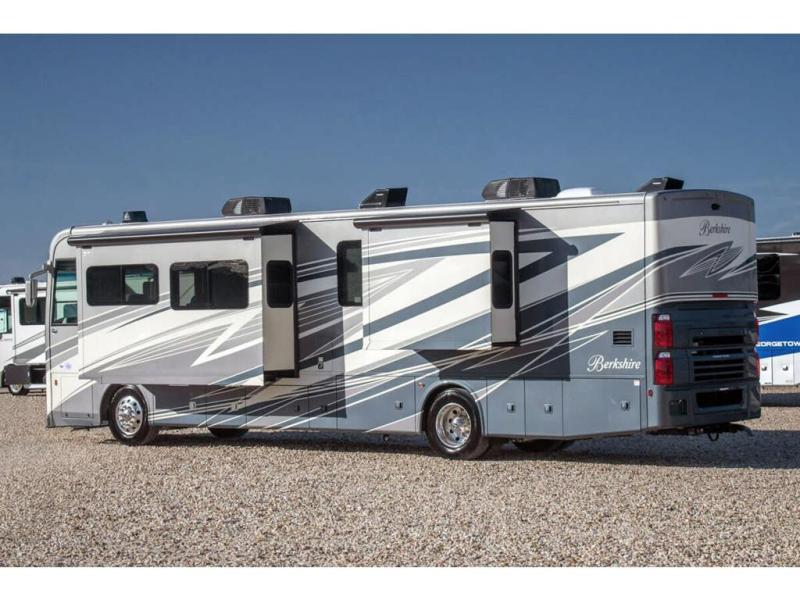 Experience the luxury and power behind the Berkshire Class A diesel motorhome by Forest River. Each model includes a Cummins ISB turbo diesel 6.7 liter, 360 HP engine that sits on a Freightliner XCR raised-rail chassis. The Allison 3000MH 6-speed transmission and V-Series front/rear suspension will provide an exceptional driving experience, and the exterior full-body paint features five different choices for maximum eye appeal. Each Berkshire is constructed with a vacuum bonded roof, sidewalls, and floors, an aluminum tube frame, and a Tru-Brace Anti Camber chassis support system for a motorhome that will last for years to come. Each model also includes a "soft touch" padded ceiling, manual day/night shades, polished porcelain tile throughout, and many more interior comforts!