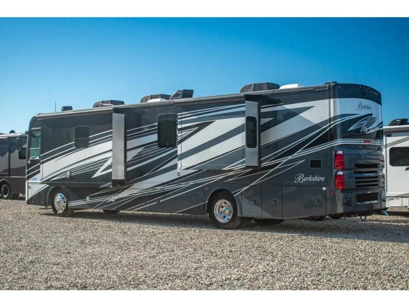 Experience the luxury and power behind the Berkshire Class A diesel motorhome by Forest River. Each model includes a Cummins ISB turbo diesel 6.7 liter, 360 HP engine that sits on a Freightliner XCR raised-rail chassis. The Allison 3000MH 6-speed transmission and V-Series front/rear suspension will provide an exceptional driving experience, and the exterior full-body paint features five different choices for maximum eye appeal. Each Berkshire is constructed with a vacuum bonded roof, sidewalls, and floors, an aluminum tube frame, and a Tru-Brace Anti Camber chassis support system for a motorhome that will last for years to come. Each model also includes a "soft touch" padded ceiling, manual day/night shades, polished porcelain tile throughout, and many more interior comforts!
