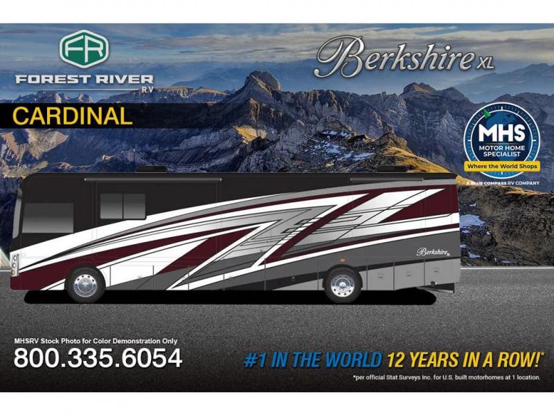 Experience everyday comfort and luxury with each one of these Forest River RV Berkshire XL Class A diesel motorhomes! The Cummins ISL turbo diesel 380 HP engine will power your unit to any destination and the raised rail Freightliner XCR chassis and Tru-Brace anti-chamber support bracing will hold it together. The Oasis hydronic heat creates even heating throughout the inside and provides an instant hot water, and the electric heated tile floors will make your feet happy. A one piece fiberglass roof covers the unit and block foam polystyrene insulation in the walls, roof, and floors mean you can travel all year around. Inside, you'll love the polished porcelain tile throughout, along with window valances, living room ceiling crown trim, and hardwood raised panel cabinet doors to name a few comforts.