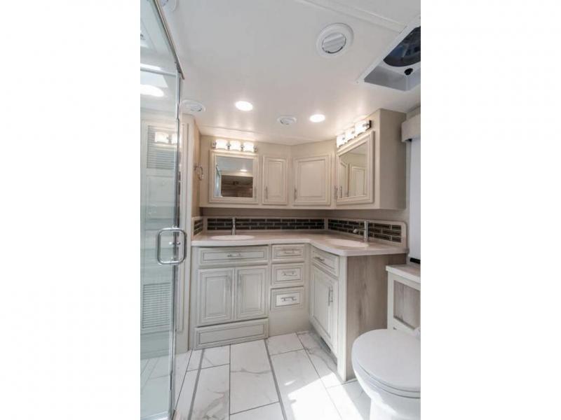 This RV measures approximately 41 feet 0 inches in length and features 3 slides including a full-wall slide, a 380HP Cummins diesel engine, Aluminum Wheels, Onan diesel generator on a slide, Raised Rail Freightliner chassis, full air ABS brakes with auto slack adjuster, Neway air suspension and Sachs custom tuned shock absorbers.