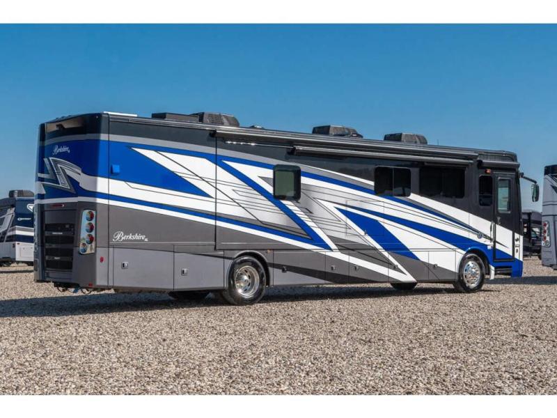 Experience everyday comfort and luxury with each one of these Forest River RV Berkshire XL Class A diesel motorhomes! The Cummins ISL turbo diesel 380 HP engine will power your unit to any destination and the raised rail Freightliner XCR chassis and Tru-Brace anti-chamber support bracing will hold it together. The Oasis hydronic heat creates even heating throughout the inside and provides an instant hot water, and the electric heated tile floors will make your feet happy. A one piece fiberglass roof covers the unit and block foam polystyrene insulation in the walls, roof, and floors mean you can travel all year around. Inside, you'll love the polished porcelain tile throughout, along with window valances, living room ceiling crown trim, and hardwood raised panel cabinet doors to name a few comforts.