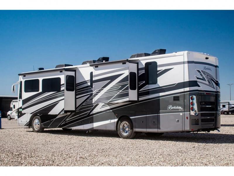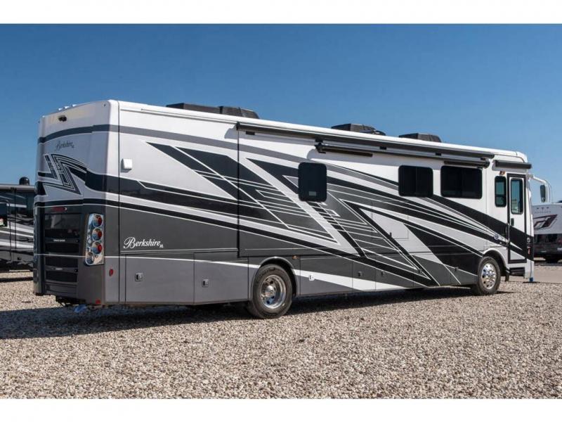 Experience everyday comfort and luxury with each one of these Forest River RV Berkshire XL Class A diesel motorhomes! The Cummins ISL turbo diesel 380 HP engine will power your unit to any destination and the raised rail Freightliner XCR chassis and Tru-Brace anti-chamber support bracing will hold it together. The Oasis hydronic heat creates even heating throughout the inside and provides an instant hot water, and the electric heated tile floors will make your feet happy. A one piece fiberglass roof covers the unit and block foam polystyrene insulation in the walls, roof, and floors mean you can travel all year around. Inside, you'll love the polished porcelain tile throughout, along with window valances, living room ceiling crown trim, and hardwood raised panel cabinet doors to name a few comforts.
