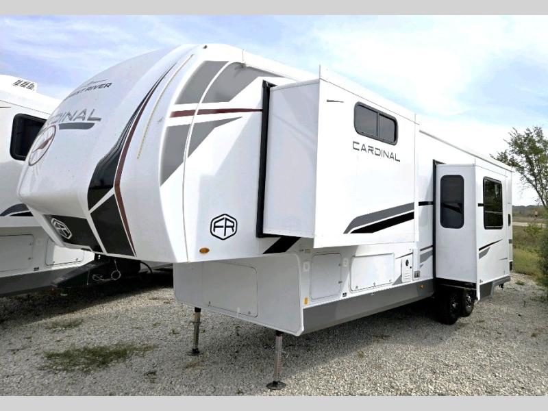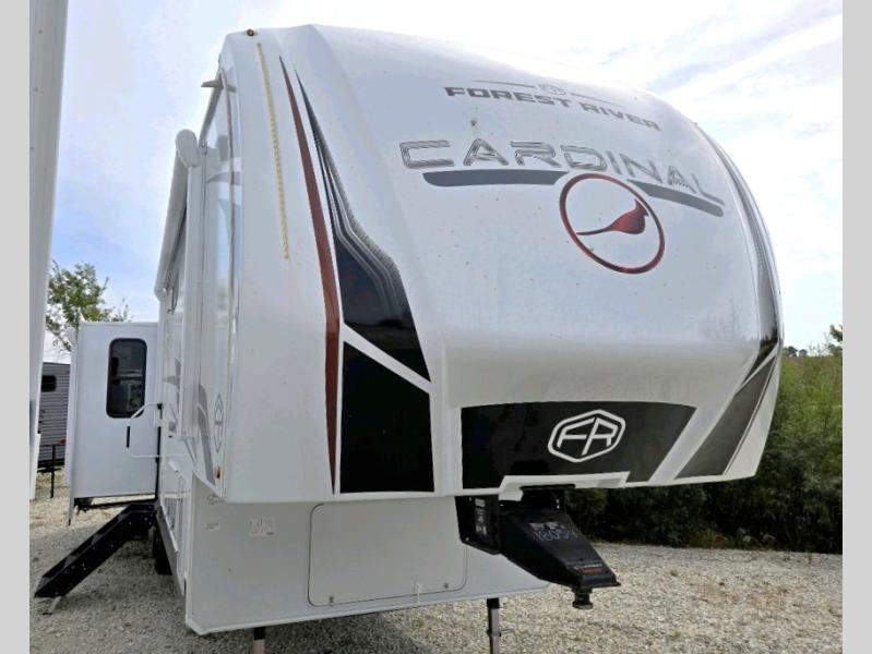 With any Cardinal fifth wheel by Forest River you will enjoy affordable luxury at every turn. These models are constructed with residential fiberglass insulation in the roof and floor, a sectioned ABS plastic underbelly armor, and a vacuum bonded, welded aluminum structure for added strength and durability. You will also find seamless roto-cast holding tanks, an outdoor shower, and 4-point auto leveling for quick and easy setup. There are carpet-free living spaces, residential backsplash, motion lighting throughout, and many more comforts!