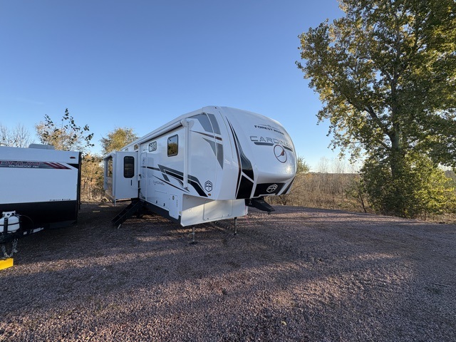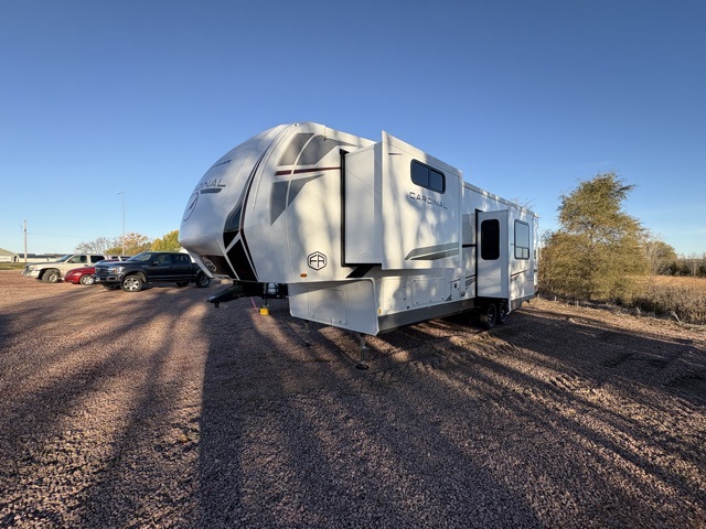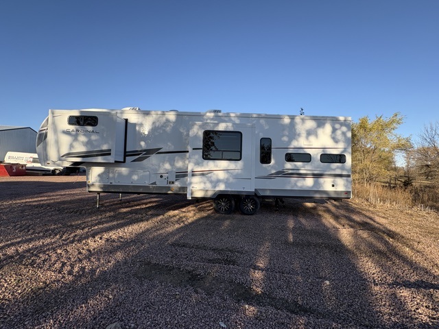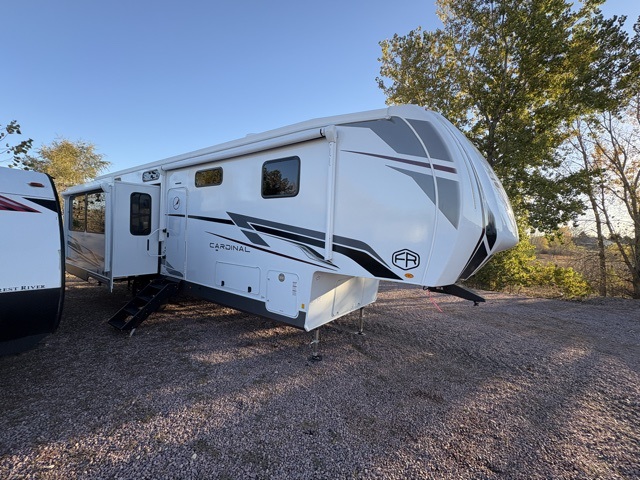 With any Cardinal fifth wheel by Forest River you will enjoy affordable luxury at every turn. These models are constructed with residential fiberglass insulation in the roof and floor, a sectioned ABS plastic underbelly armor, and a vacuum bonded, welded aluminum structure for added strength and durability. You will also find seamless roto-cast holding tanks, an outdoor shower, and 4-point auto leveling for quick and easy setup. There are carpet-free living spaces, residential backsplash, motion lighting throughout, and many more comforts!