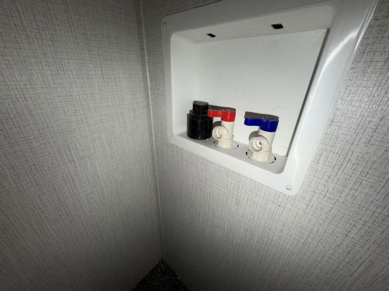 Cook like a chef worthy of a Michelin star in this amazing fifth wheel! Inside, you'll find a spacious rear kitchen, complete with a pantry, a 12V refrigerator ideal for keeping your fruits and vegetables fresh, overhead cabinets, and a sprawling countertop for all your cooking and dining times. The high-top table and chairs provide the perfect place to enjoy meals with family and friends. The living room is a cozy place featuring comfortable theater seating, a tri-fold sofa, a cozy fireplace, an entertainment center, and a convenient desk for staying productive on the go. The full bathroom is also a great place to freshen up, complete with a linen closet and all the amenities you need to take a bath and feel at home. With a spacious shower and plenty of storage, you'll have everything you need to start your day off right. The perfect place to rest and recharge after a long day of adventure is the front bedroom which boasts a comfortable king bed, dresser, walk-in wardrobe with washer and dryer prep, for keeping all your favorite belongings clean and organized on the road. Outside, you'll appreciate the pass-through storage for all your gear and toys, as well as the two awnings (15' and 11') ideal for creating unforgettable memories outside without worrying about the weather.