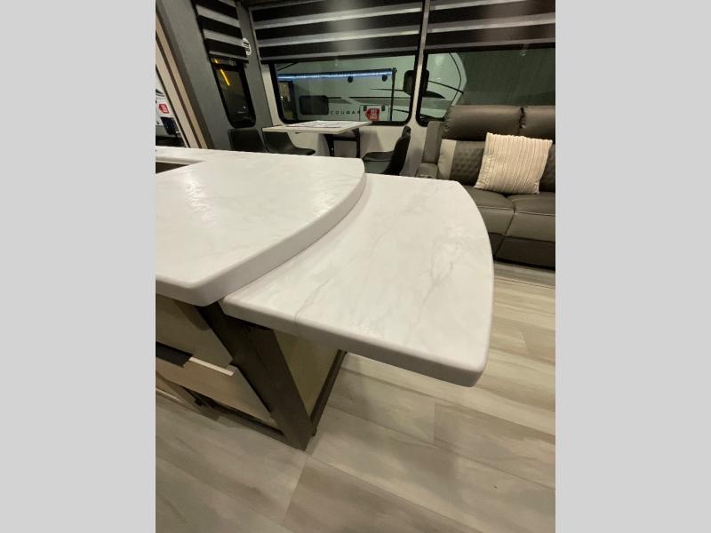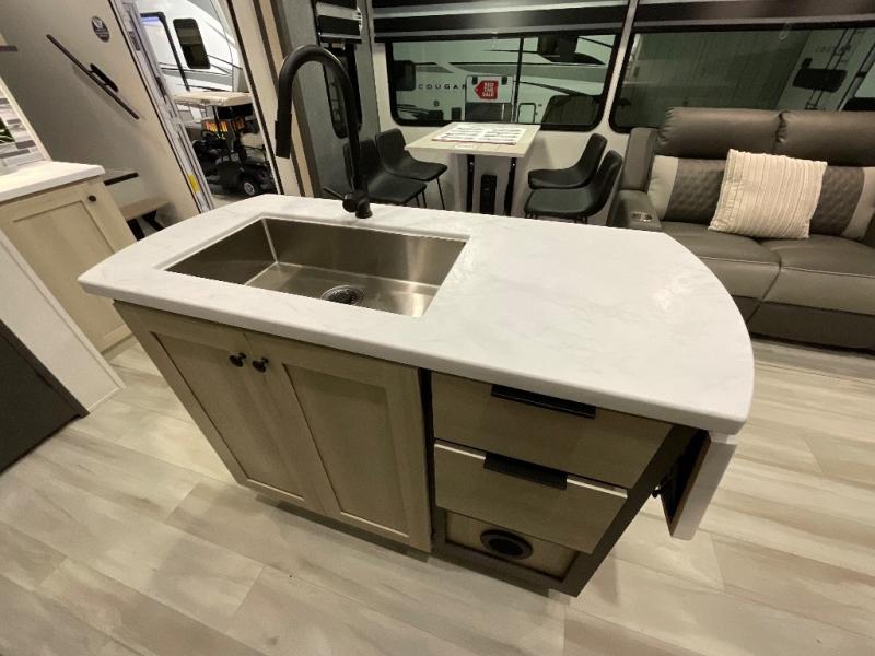 With any Cardinal fifth wheel by Forest River you will enjoy affordable luxury at every turn. These models are constructed with residential fiberglass insulation in the roof and floor, a sectioned ABS plastic underbelly armor, and a vacuum bonded, welded aluminum structure for added strength and durability. You will also find seamless roto-cast holding tanks, an outdoor shower, and 4-point auto leveling for quick and easy setup. There are carpet-free living spaces, residential backsplash, motion lighting throughout, and many more comforts!