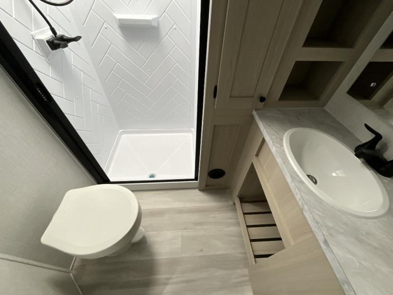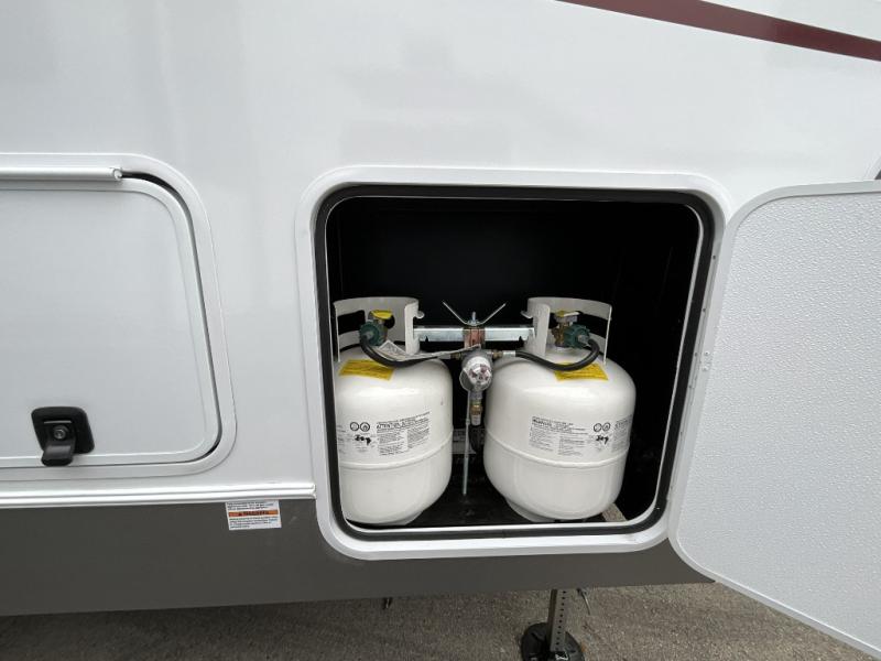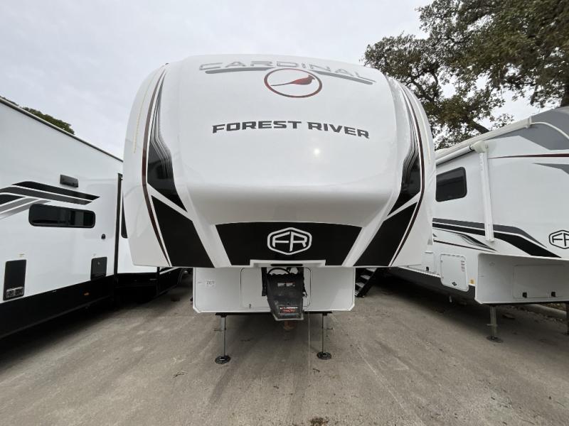 With any Cardinal fifth wheel by Forest River, you will enjoy affordable luxury at every turn. These models are constructed with residential fiberglass insulation in the roof and floor, a heated and enclosed underbelly armor, and a vacuum bonded, welded aluminum structure for added strength and durability. You will also find seamless roto-cast holding tanks, an outdoor shower, and 4-point auto leveling for quick and easy setup. There are carpet-free living spaces, residential backsplash, motion lighting throughout, and many more comforts!