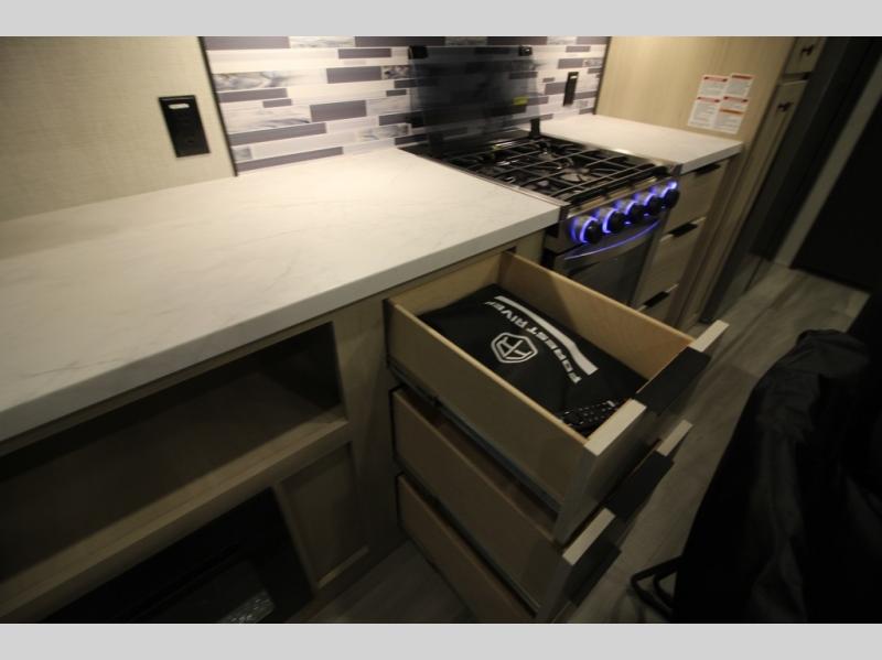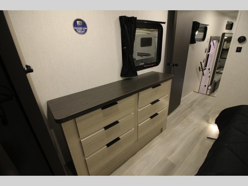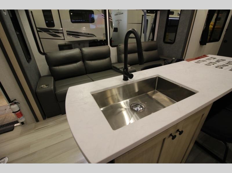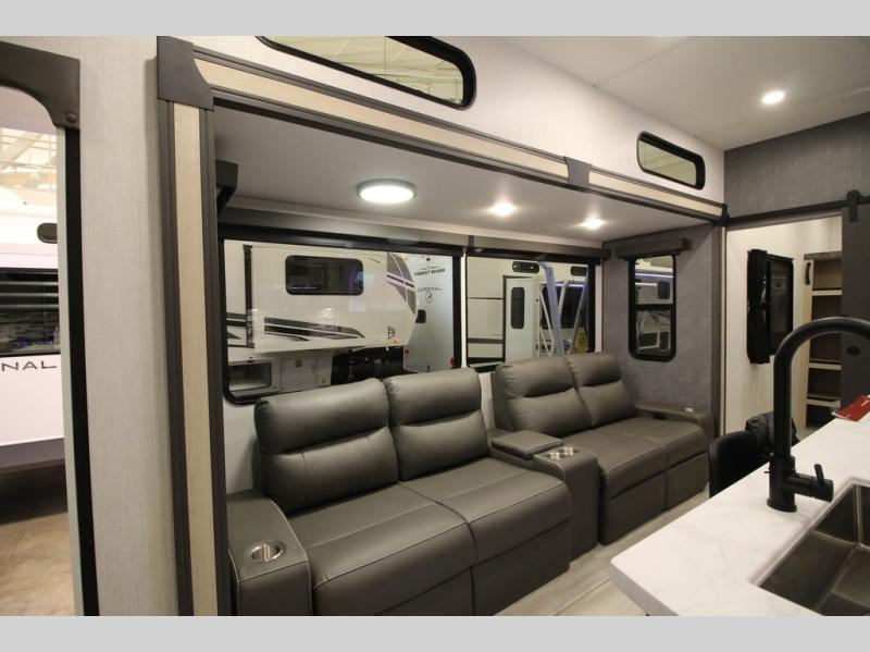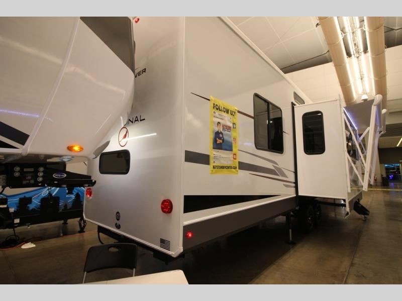 With any Cardinal fifth wheel by Forest River, you will enjoy affordable luxury at every turn. These models are constructed with residential fiberglass insulation in the roof and floor, a heated and enclosed underbelly armor, and a vacuum bonded, welded aluminum structure for added strength and durability. You will also find seamless roto-cast holding tanks, an outdoor shower, and 4-point auto leveling for quick and easy setup. There are carpet-free living spaces, residential backsplash, motion lighting throughout, and many more comforts!