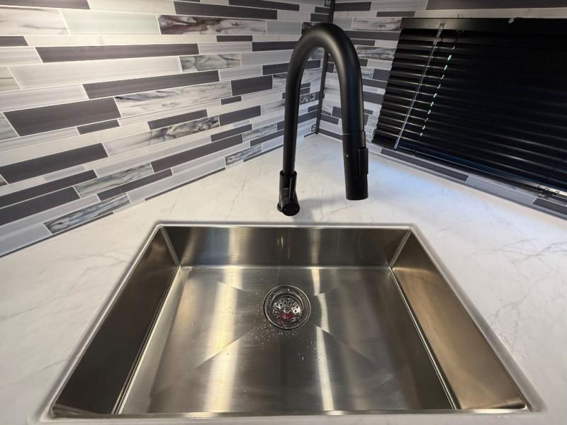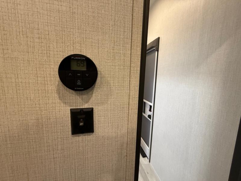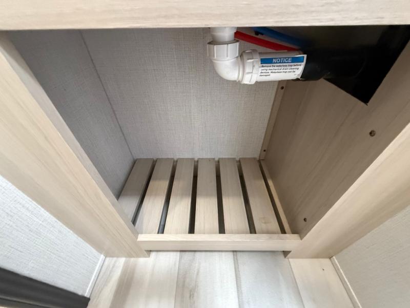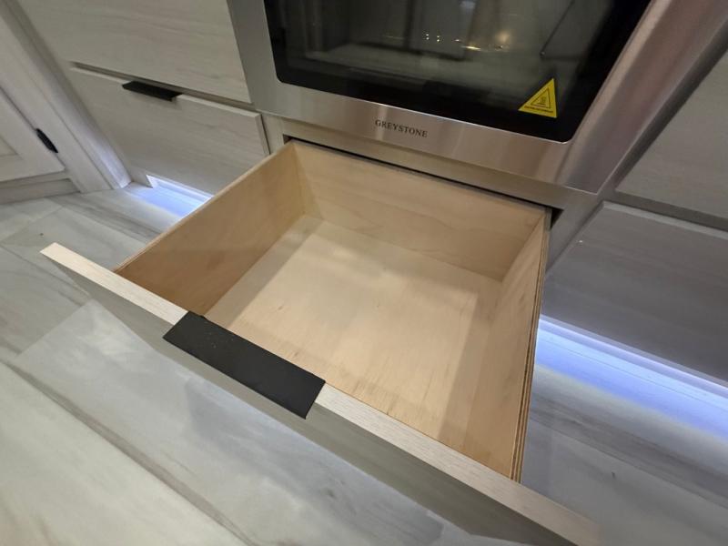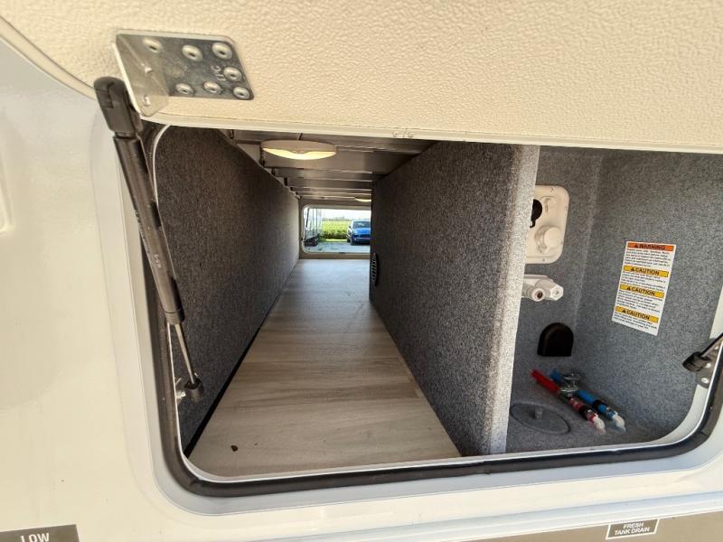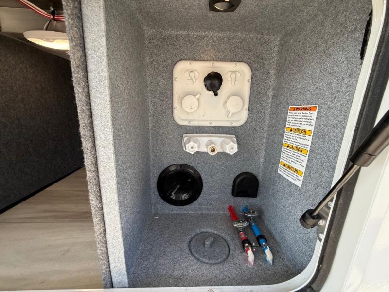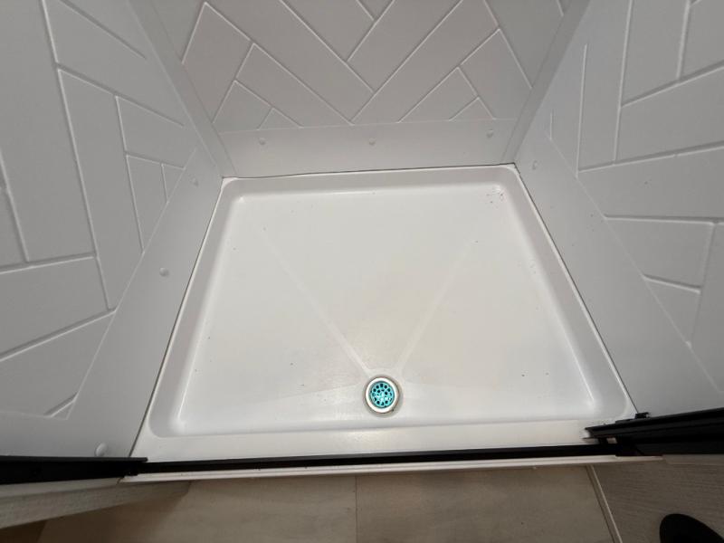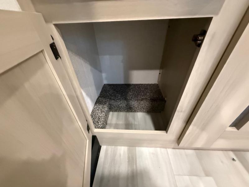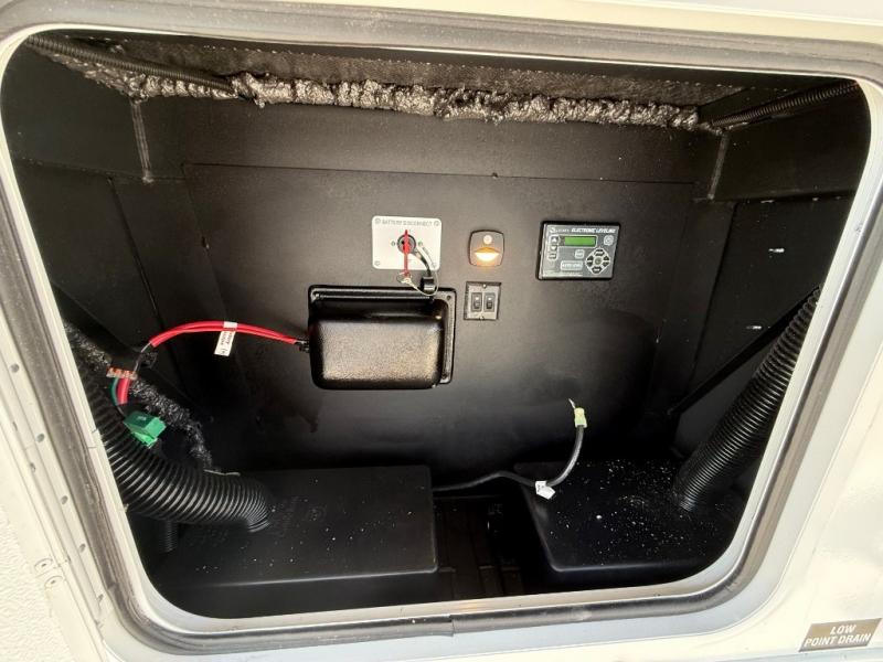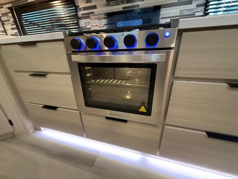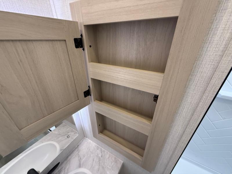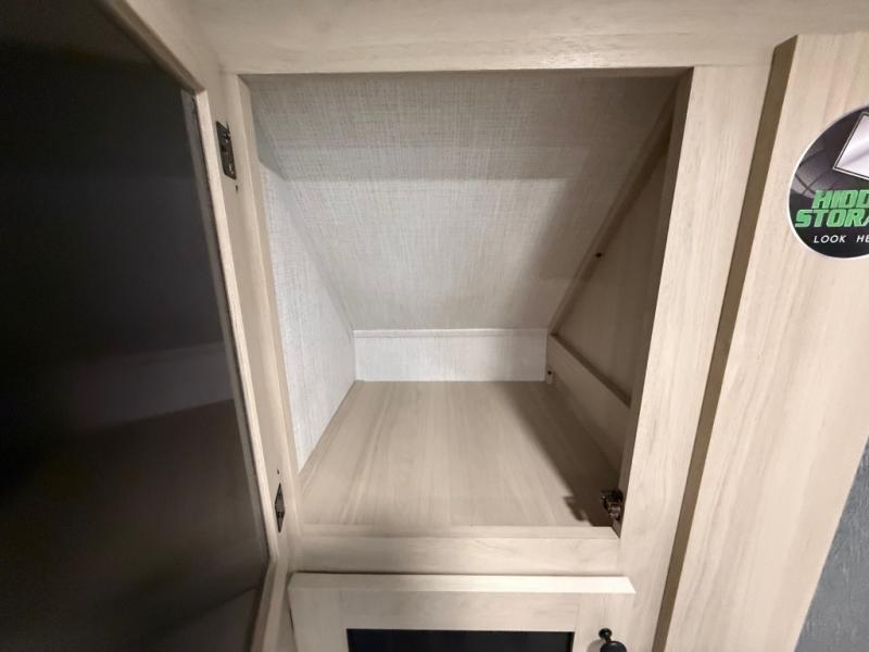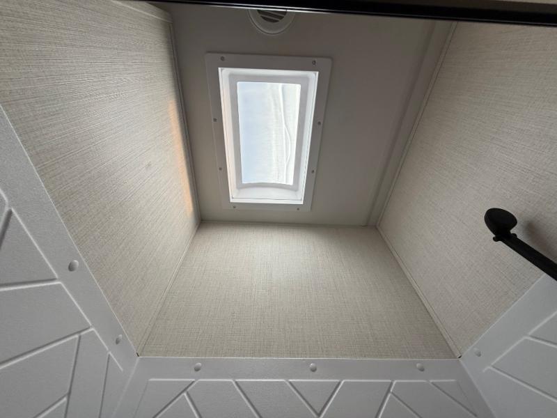 This fifth wheel is packed with features to make each trip enjoyable! The middle kitchen might be your favorite room with wrap-around counter space, a pantry, and a 16 cu. ft. 12V refrigerator for food storage. You can dine at the hi-top table and chairs here, or sit in the front living area on the dual sofas and theater seating! This area can become your guests bedroom at night since there are dual opposing slides and wardrobe storage for their things. You will also find a full-length wardrobe in the rear private bedroom, along with a king bed slide out, plus washer and dryer prep! And of course there is a full bath so everyone can stay clean each day!