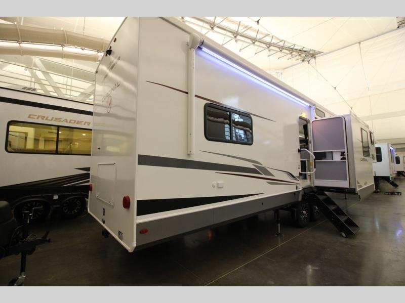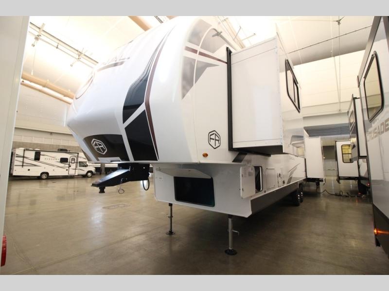 With any Cardinal fifth wheel by Forest River you will enjoy affordable luxury at every turn. These models are constructed with residential fiberglass insulation in the roof and floor, a sectioned ABS plastic underbelly armor, and a vacuum bonded, welded aluminum structure for added strength and durability. You will also find seamless roto-cast holding tanks, an outdoor shower, and 4-point auto leveling for quick and easy setup. There are carpet-free living spaces, residential backsplash, motion lighting throughout, and many more comforts!