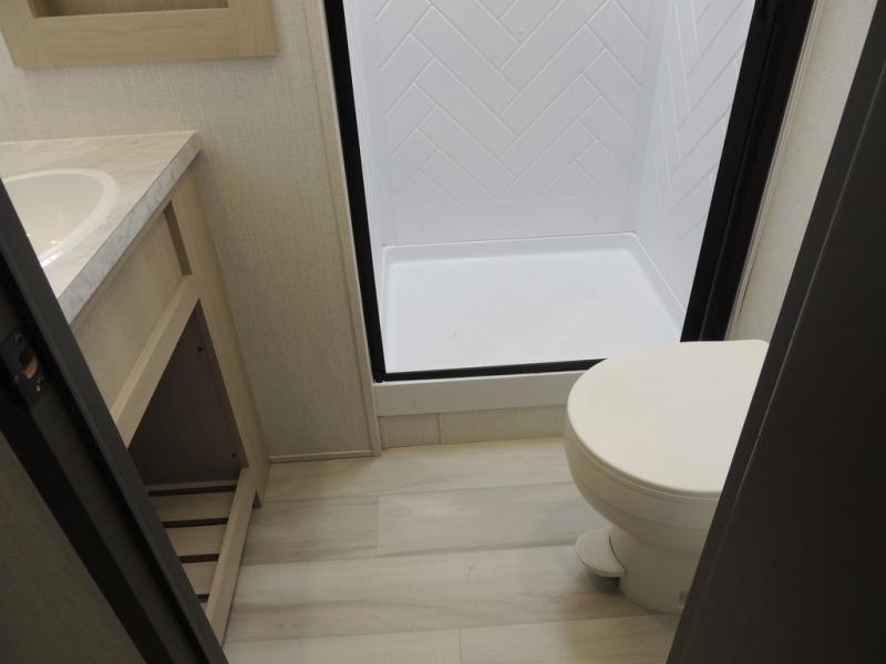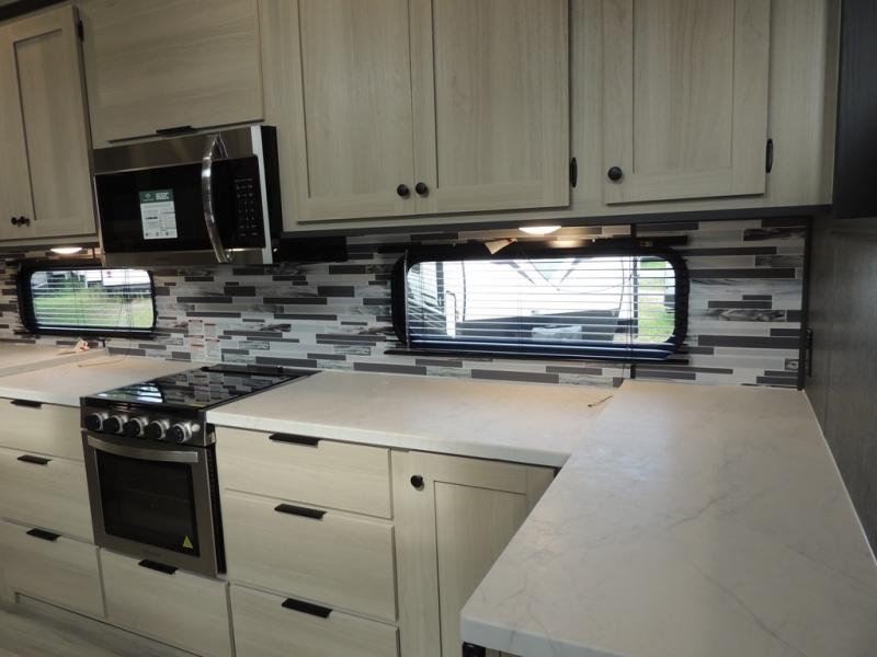 With any Cardinal fifth wheel by Forest River, you will enjoy affordable luxury at every turn. These models are constructed with residential fiberglass insulation in the roof and floor, a heated and enclosed underbelly armor, and a vacuum bonded, welded aluminum structure for added strength and durability. You will also find seamless roto-cast holding tanks, an outdoor shower, and 4-point auto leveling for quick and easy setup. There are carpet-free living spaces, residential backsplash, motion lighting throughout, and many more comforts!