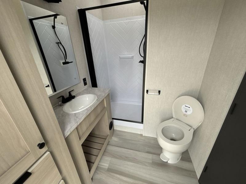 With any Cardinal fifth wheel by Forest River you will enjoy affordable luxury at every turn. These models are constructed with residential fiberglass insulation in the roof and floor, a sectioned ABS plastic underbelly armor, and a vacuum bonded, welded aluminum structure for added strength and durability. You will also find seamless roto-cast holding tanks, an outdoor shower, and 4-point auto leveling for quick and easy setup. There are carpet-free living spaces, residential backsplash, motion lighting throughout, and many more comforts!