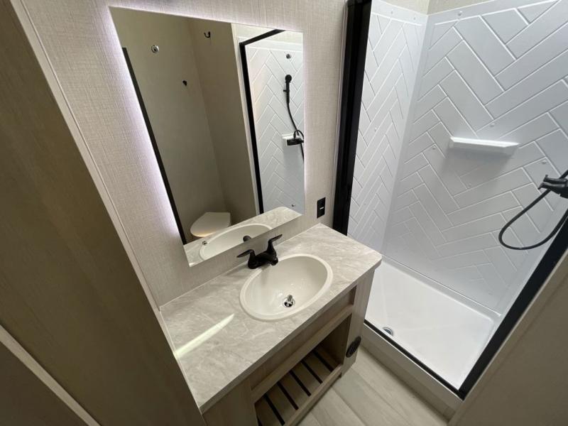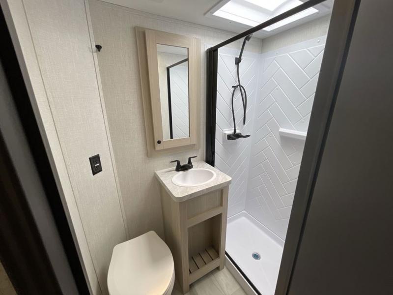 With any Cardinal fifth wheel by Forest River you will enjoy affordable luxury at every turn. These models are constructed with residential fiberglass insulation in the roof and floor, a sectioned ABS plastic underbelly armor, and a vacuum bonded, welded aluminum structure for added strength and durability. You will also find seamless roto-cast holding tanks, an outdoor shower, and 4-point auto leveling for quick and easy setup. There are carpet-free living spaces, residential backsplash, motion lighting throughout, and many more comforts!