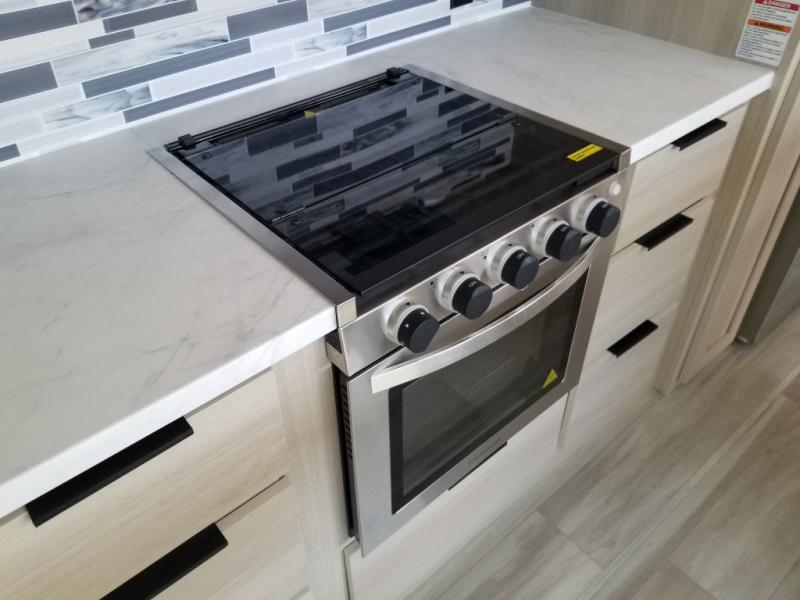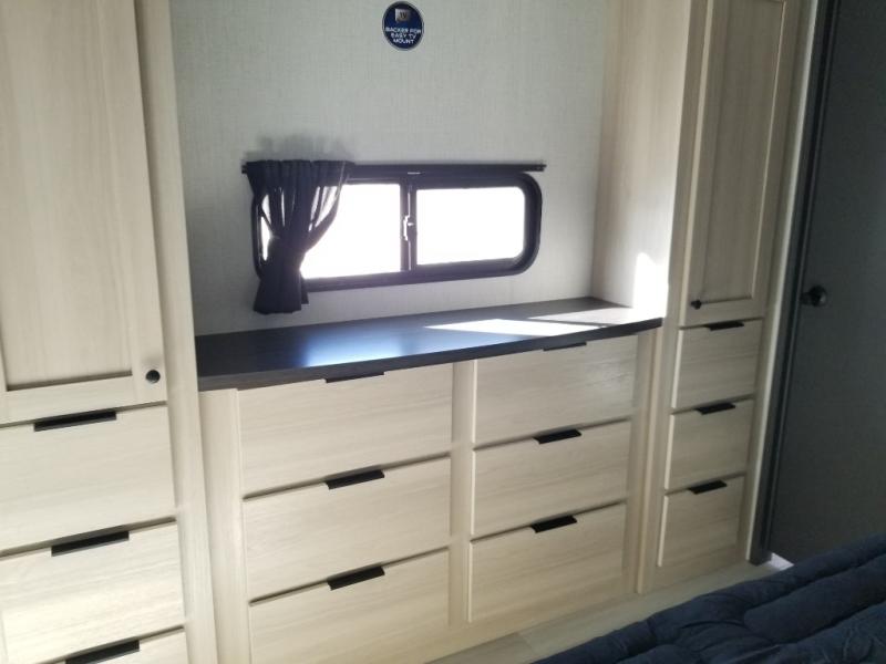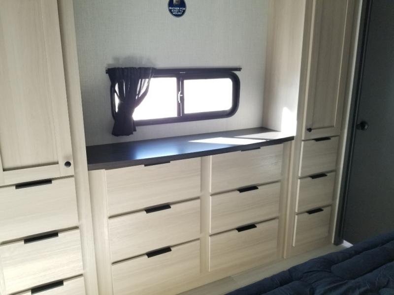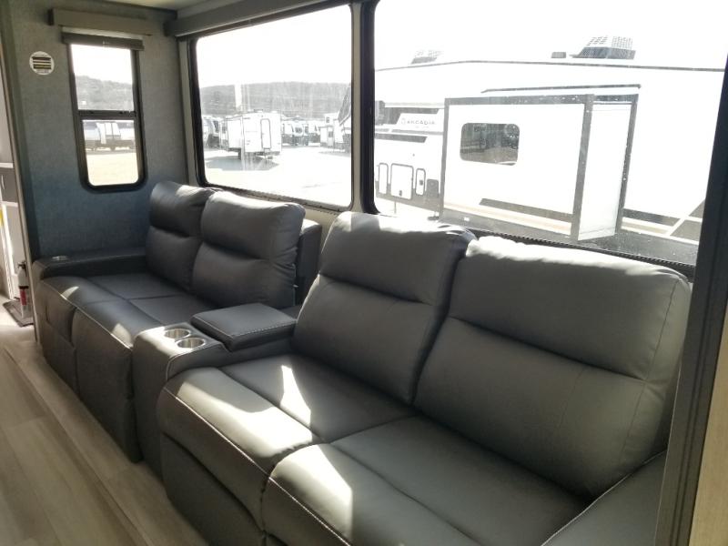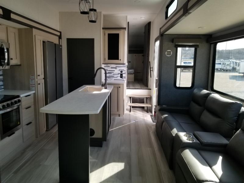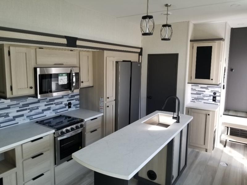 With any Cardinal fifth wheel by Forest River, you will enjoy affordable luxury at every turn. These models are constructed with residential fiberglass insulation in the roof and floor, a heated and enclosed underbelly armor, and a vacuum bonded, welded aluminum structure for added strength and durability. You will also find seamless roto-cast holding tanks, an outdoor shower, and 4-point auto leveling for quick and easy setup. There are carpet-free living spaces, residential backsplash, motion lighting throughout, and many more comforts!