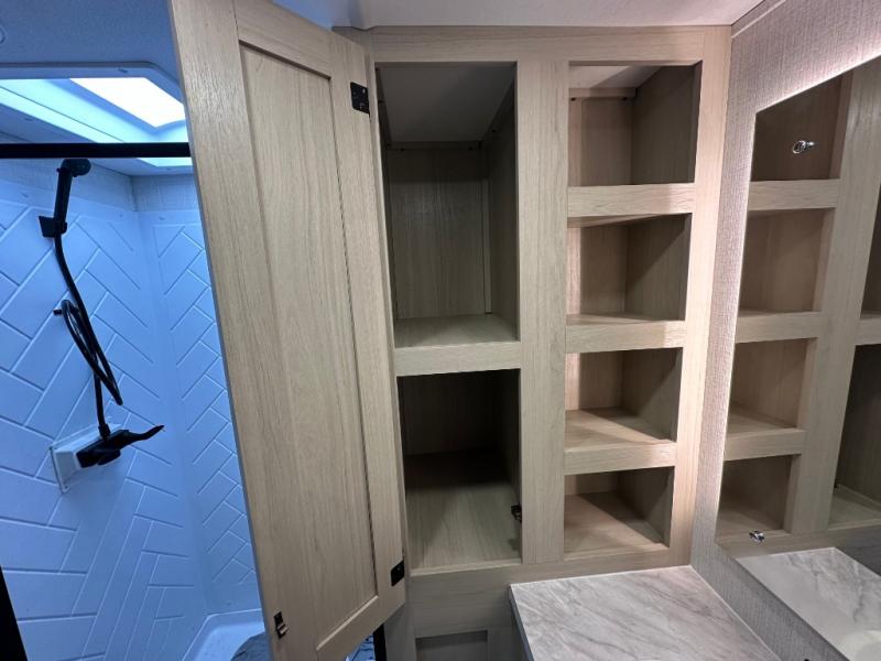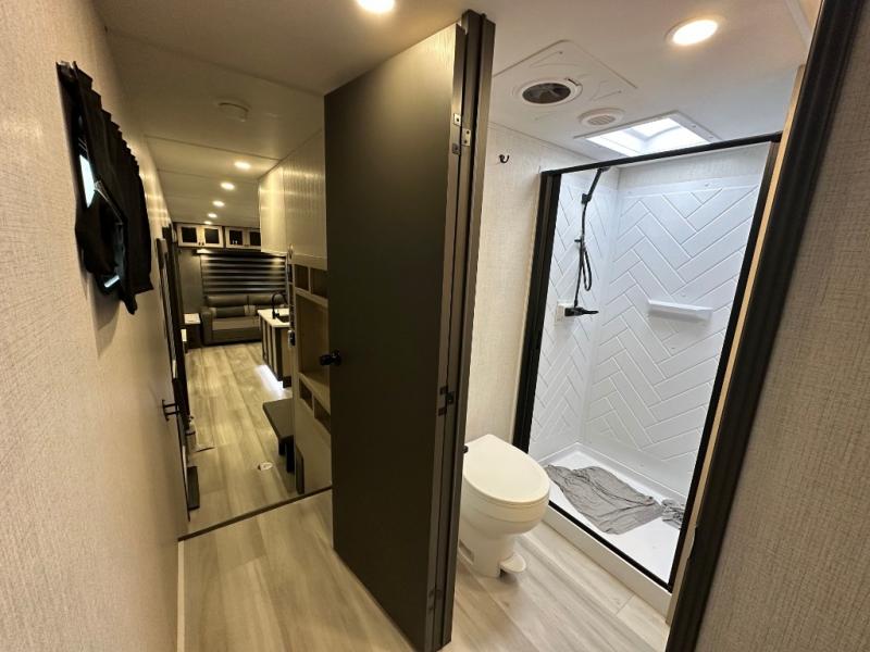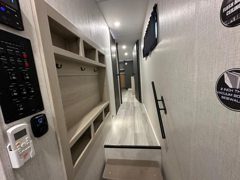 With any Cardinal fifth wheel by Forest River you will enjoy affordable luxury at every turn. These models are constructed with residential fiberglass insulation in the roof and floor, a sectioned ABS plastic underbelly armor, and a vacuum bonded, welded aluminum structure for added strength and durability. You will also find seamless roto-cast holding tanks, an outdoor shower, and 4-point auto leveling for quick and easy setup. Each model includes a best-in-class, high-efficiency 35,000 BTU furnace, along with a 13,500 BTU ducted A/C, with second and third A/C prep, plus an on-demand tankless water heater for added convenience. There are carpet-free living spaces, residential backsplash, motion lighting throughout, and many more comforts!