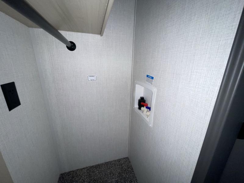 Wow! You won't believe the features found in this luxury fifth wheel that can sleep up to nine each night! Your guests or the kids will absolutely love the middle bunkroom with a hide-a-bed sofa and bunk beds plus a loft above for even more sleeping or storage space. There is also a desk/wardrobe here, which will allow you to utilize this space as an office as well! You'll have your own space in the front private bedroom on the king bed slide out, and there is a walk-in wardrobe to keep your clothes tidy. There is even washer and dryer prep for the option to keep those clothes clean! The chef of your group will have everything they need to prepare meals, including a 21" 2-in-1 oven range, an over-the-range microwave, a 16 cu. ft. 12V refrigerator, plus a kitchen island for more counter space. In the evenings, your crew can get cozy on the rear sofa and theater seats across from the entertainment center and fireplace, or you might just play a game at the hi-top table and chairs!