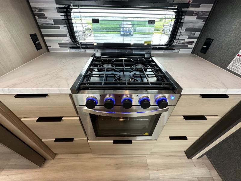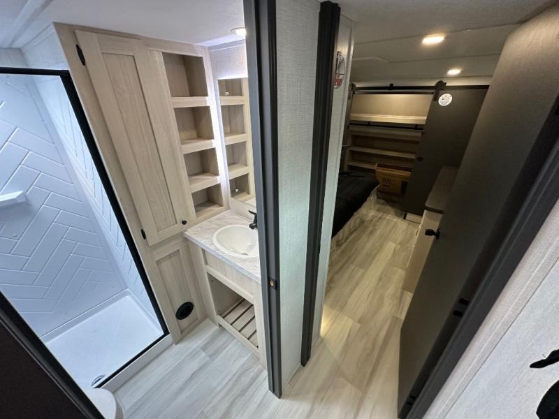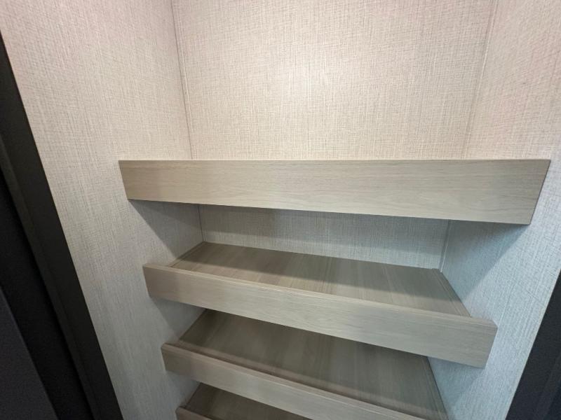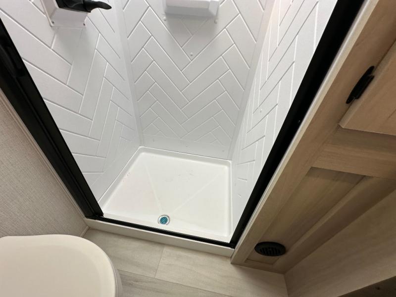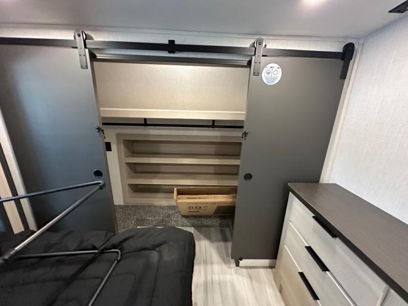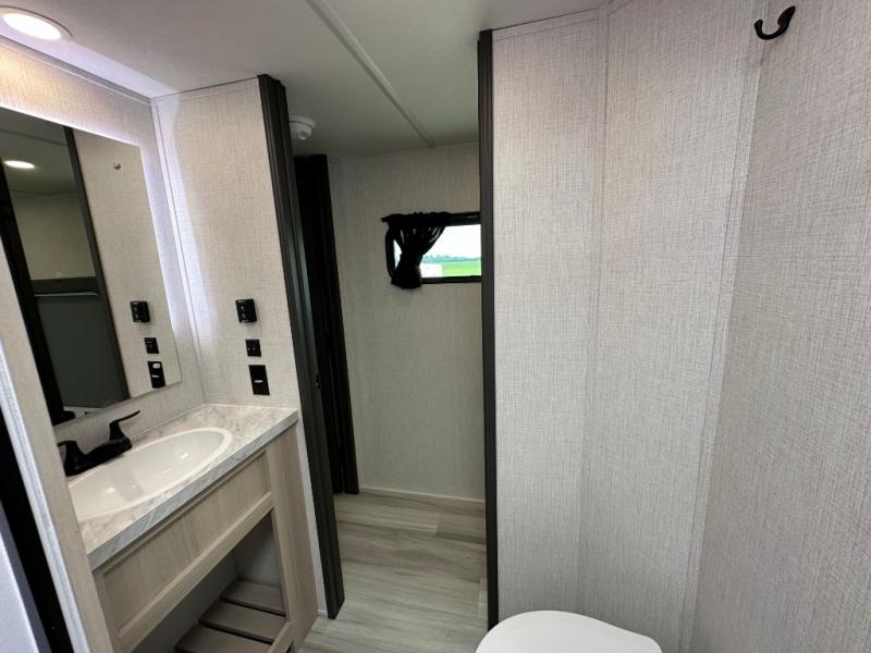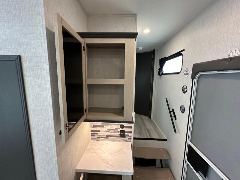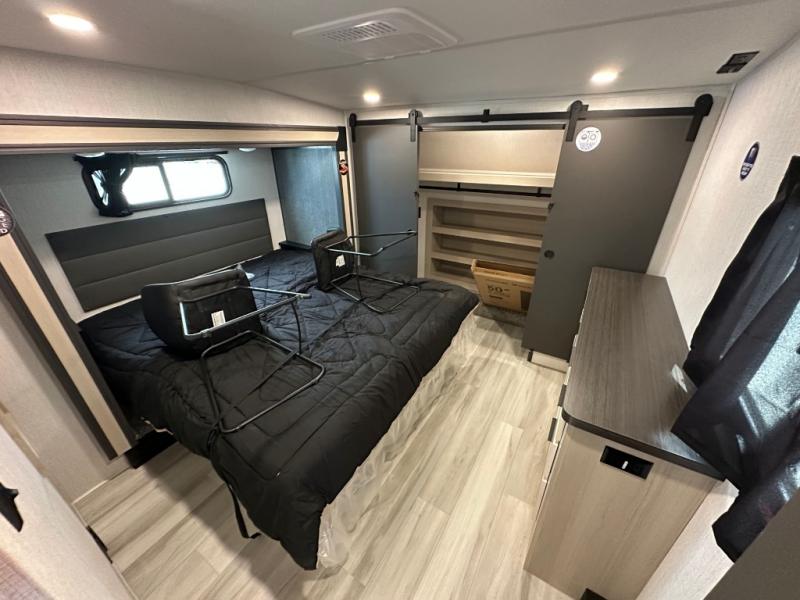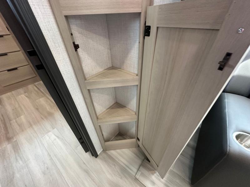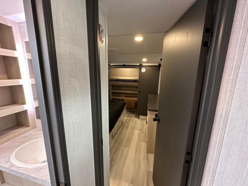 This fifth wheel's name describes it perfectly; it's the best! Your guests will love the rear private bunkhouse with dual opposing slides, bunk beds, plus a hide-a-bed sofa and an entertainment center with dual wardrobes. There is even a half bath with its own exterior entry door! You will have the front private bedroom all to yourselves with a king bed slide out and a walk-in wardrobe with washer and dryer prep. And the full bath is close by for easy nighttime use. The combined middle kitchen and living room will be a space everyone can meet in since there is a hi-top table and chairs and theater seating, an entertainment center with a fireplace, plus a kitchen island where snacks can be set out.
