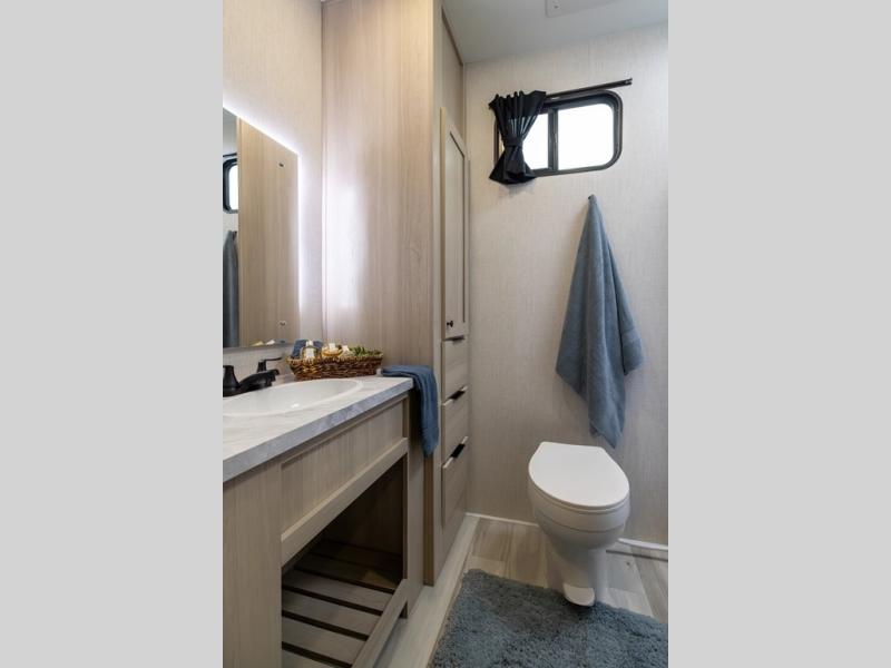With any Cardinal fifth wheel by Forest River, you will enjoy affordable luxury at every turn. These models are constructed with residential fiberglass insulation in the roof and floor, a heated and enclosed underbelly armor, and a vacuum bonded, welded aluminum structure for added strength and durability. You will also find seamless roto-cast holding tanks, an outdoor shower, and 4-point auto leveling for quick and easy setup. There are carpet-free living spaces, residential backsplash, motion lighting throughout, and many more comforts!