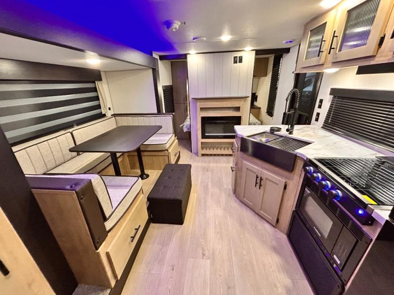 Solar Panel / MEGA DINETTE SLIDE / TWO ENTRY DOORS / TWO FULL SIZE BUNKS/FIRE PLACE/ POWER STABILIZER JACKS