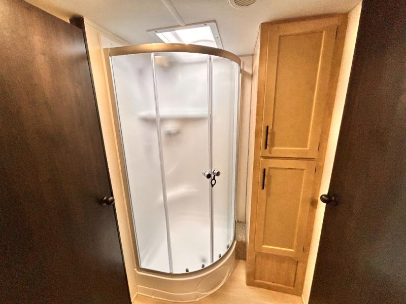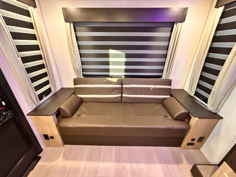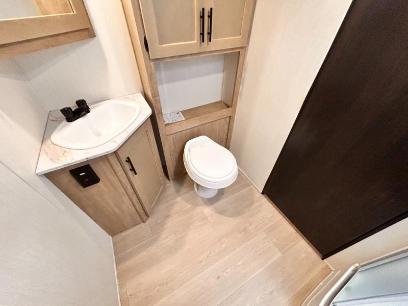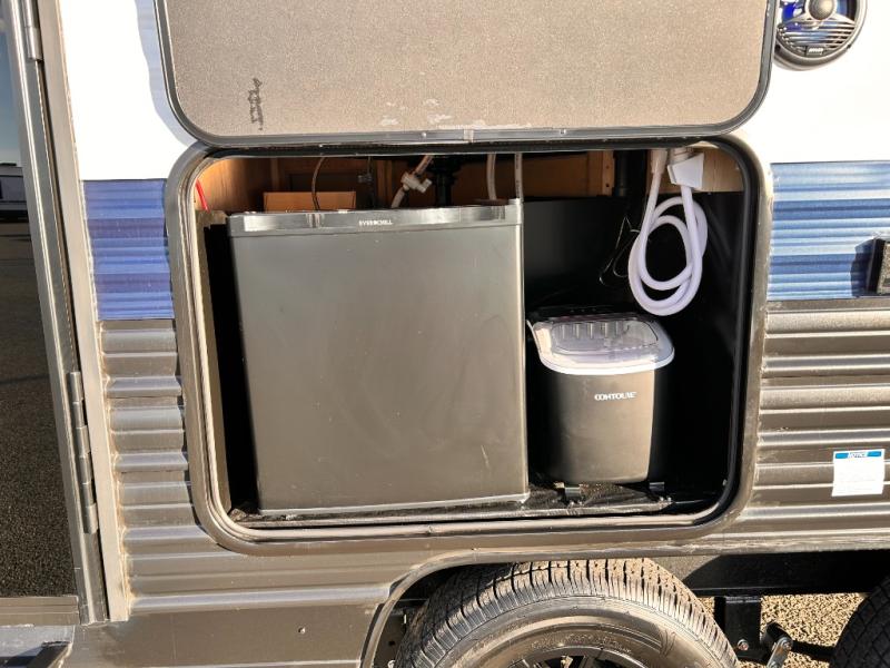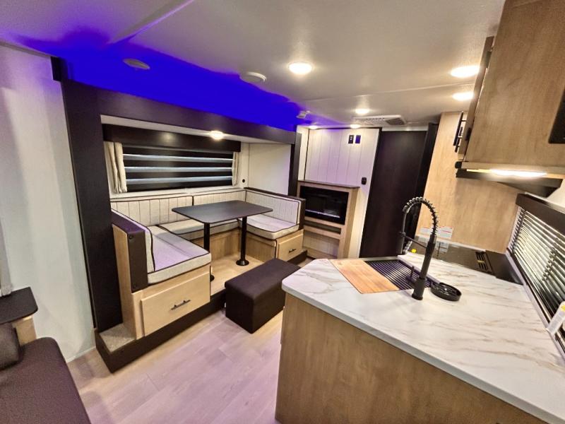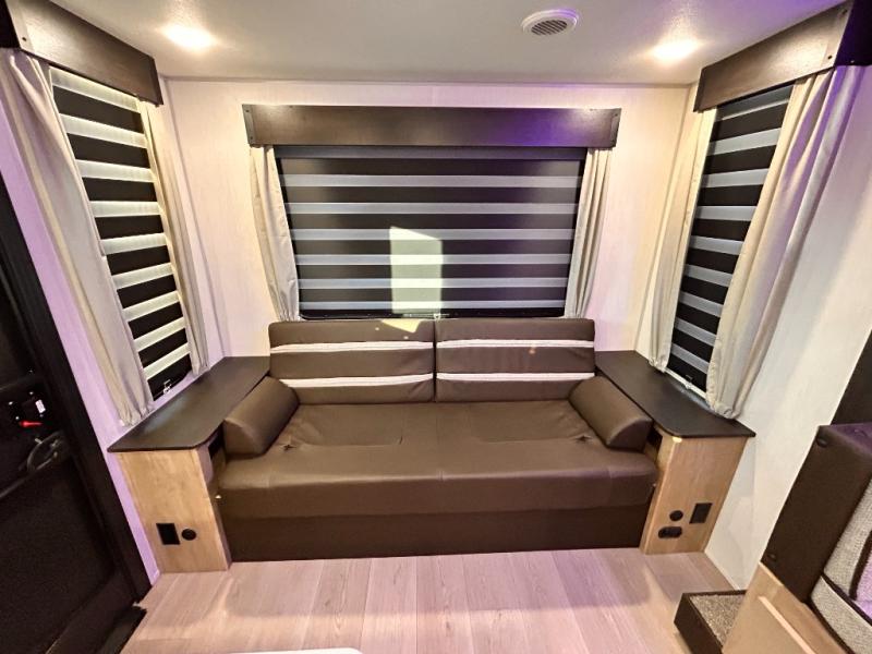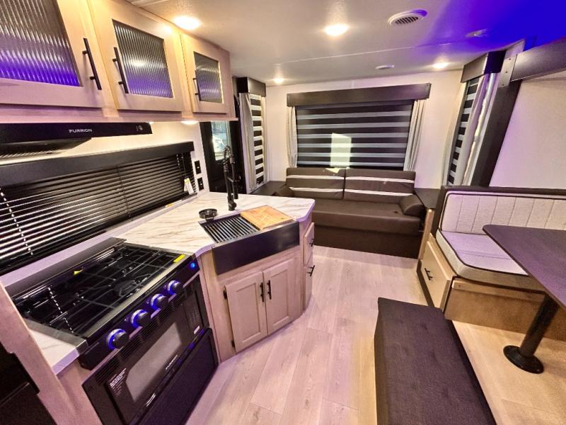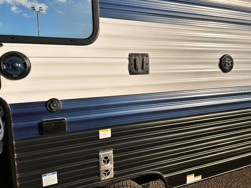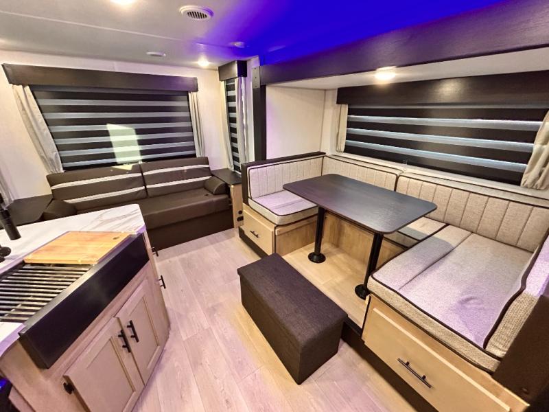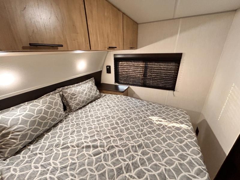 This Cherokee Grey Wolf travel trailer is perfect for your small family and will leave you planning your next outing before you are back from your current weekend away! You will find all of the comforts you need with plenty of livable space including a U-shaped dinette slide. There is also a sofa for more seating when company arrives, and there are end tables on either side to prevent spills. A spacious walk-through bath leads to a front private bedroom where you will enjoy a great night's rest on a comfortable RV king bed. You will find ample storage for clothing in the wardrobes that are above handy nightstands for your personal things.