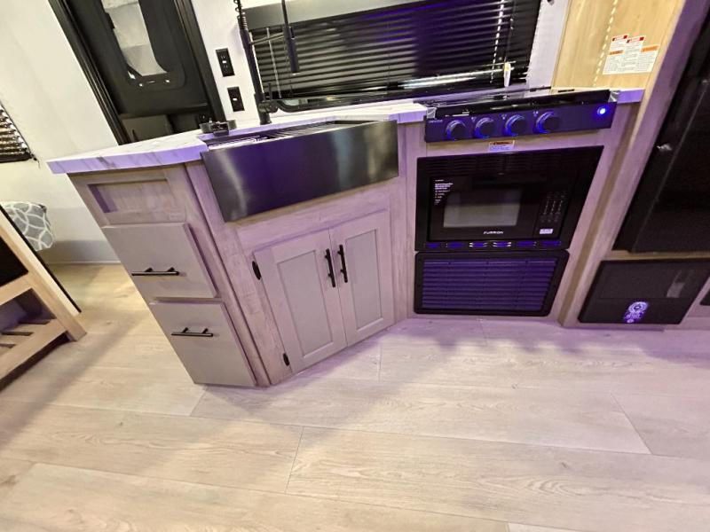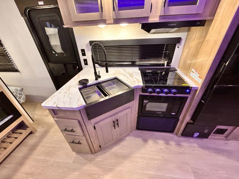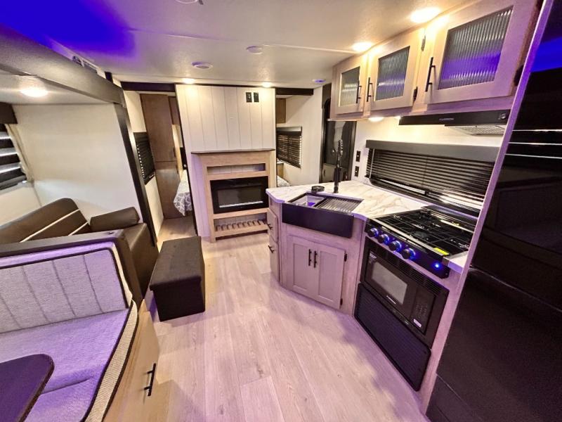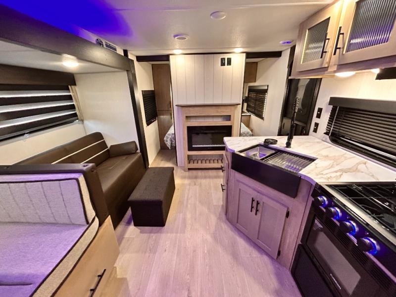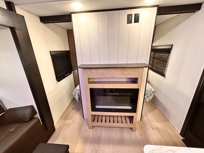 OUTDOOR KITCHEN / FIRE PLACE / TWO FULL SIZE BUNKS / TWO ENTRY DOORS / POWER STABILIZER JACKS / SOLAR SYSTEM !!