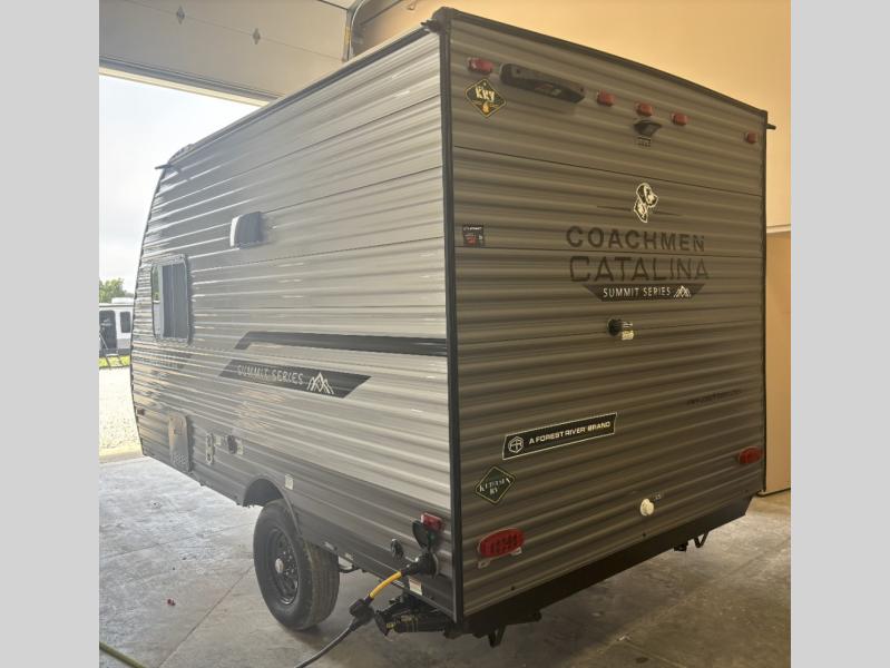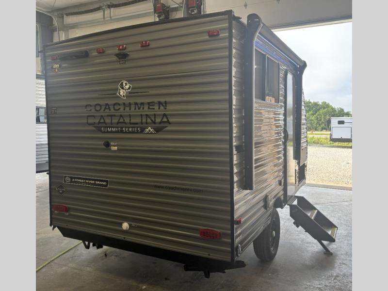 With any Catalina Summit Series 7' by Coachmen RV, you can create an easier adventure with the versatility and simplicity of the shorter lengths and lighter weights! Each includes a premium exterior graphics package, a smooth HD aluminum radius front, and EZ lube axles with leaf spring suspension. The exterior offers a heavy duty standard tongue jack, a diamond plate rock guard to protect against road debris, exterior RG-6 coax cabling and satellite prep, rear view camera prep, and flush mount baggage doors with radius corners for your outdoor gear. Inside, you will enjoy a premium JBL interior speaker, USB charging ports, seamless Thermofoil countertops throughout, a deep basin farm style sink for easy cleanup, and GE kitchen appliances. It's time to choose an affordable and maneuverable single axle trailer today!
