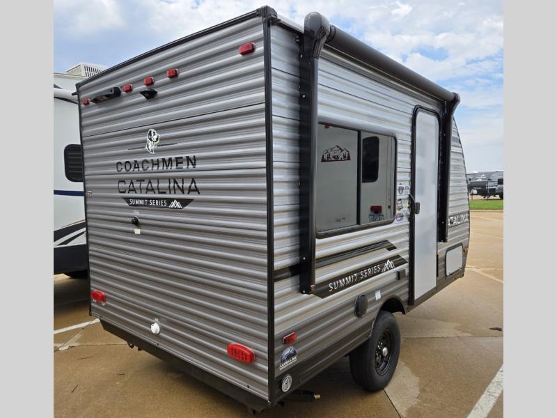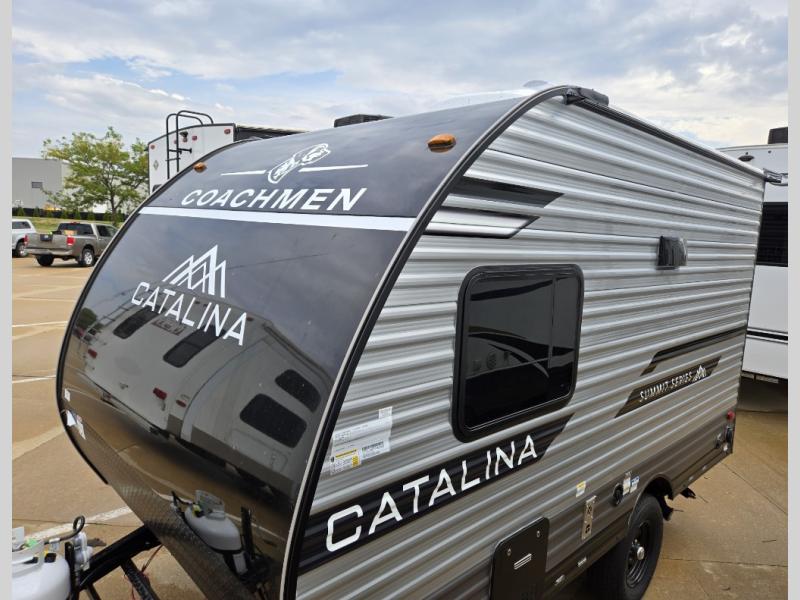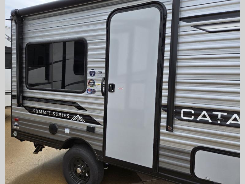 With any Catalina Summit Series 7' by Coachmen RV, you can create an easier adventure with the versatility and simplicity of the shorter lengths and lighter weights! Each includes a premium exterior graphics package, a smooth HD aluminum radius front, and EZ lube axles with leaf spring suspension. The exterior offers a heavy duty standard tongue jack, a diamond plate rock guard to protect against road debris, exterior RG-6 coax cabling and satellite prep, rear view camera prep, and flush mount baggage doors with radius corners for your outdoor gear. Inside, you will enjoy a premium JBL interior speaker, USB charging ports, seamless Thermofoil countertops throughout, a deep basin farm style sink for easy cleanup, and GE kitchen appliances. It's time to choose an affordable and maneuverable single axle trailer today!