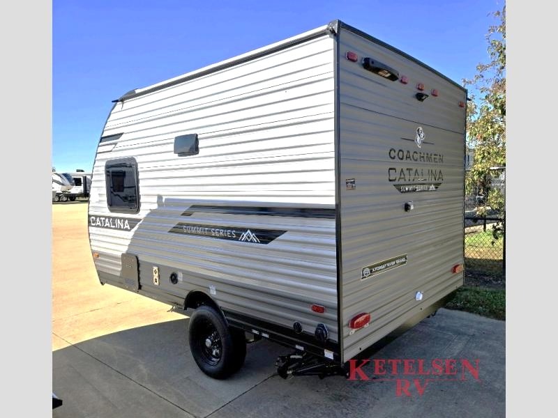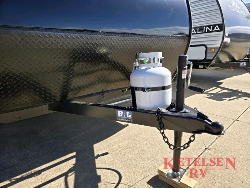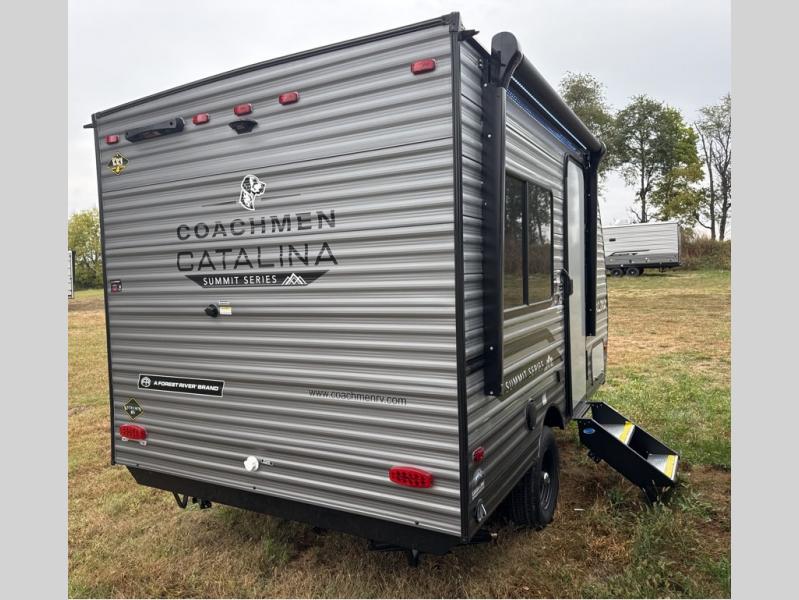 With any Catalina Summit Series 7' by Coachmen RV, you can create an easier adventure with the versatility and simplicity of the shorter lengths and lighter weights! Each includes a premium exterior graphics package, a smooth HD aluminum radius front, and EZ lube axles with leaf spring suspension. The exterior offers a heavy duty standard tongue jack, a diamond plate rock guard to protect against road debris, exterior RG-6 coax cabling and satellite prep, rear view camera prep, and flush mount baggage doors with radius corners for your outdoor gear. Inside, you will enjoy a premium JBL interior speaker, USB charging ports, seamless Thermofoil countertops throughout, a deep basin farm style sink for easy cleanup, and GE kitchen appliances. It's time to choose an affordable and maneuverable single axle trailer today!
