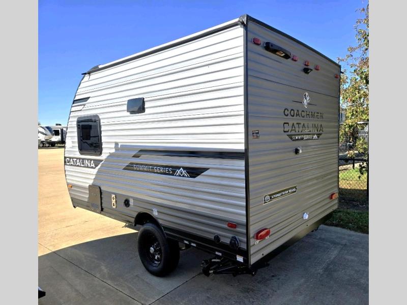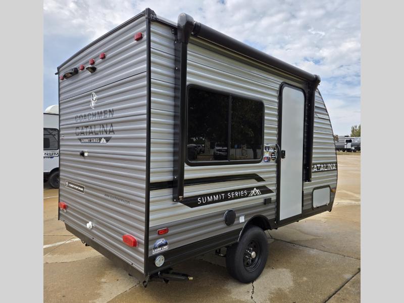 With any Catalina Summit Series 7' by Coachmen RV, you can create an easier adventure with the versatility and simplicity of the shorter lengths and lighter weights! Each includes a premium exterior graphics package, a smooth HD aluminum radius front, and EZ lube axles with leaf spring suspension. The exterior offers a heavy duty standard tongue jack, a diamond plate rock guard to protect against road debris, exterior RG-6 coax cabling and satellite prep, rear view camera prep, and flush mount baggage doors with radius corners for your outdoor gear. Inside, you will enjoy a premium JBL interior speaker, USB charging ports, seamless Thermofoil countertops throughout, a deep basin farm style sink for easy cleanup, and GE kitchen appliances. It's time to choose an affordable and maneuverable single axle trailer today!