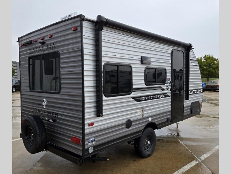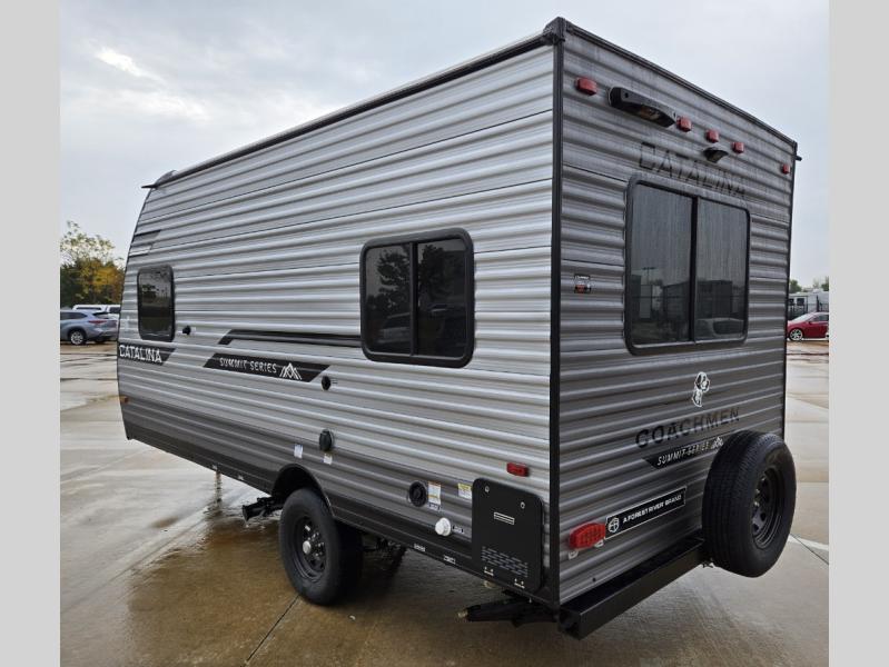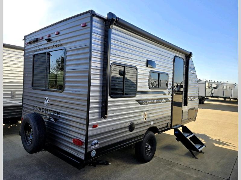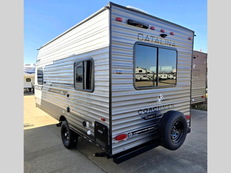With any Catalina Summit Series 7' by Coachmen RV, you can create an easier adventure with the versatility and simplicity of the shorter lengths and lighter weights! Each includes a premium exterior graphics package, a smooth HD aluminum radius front, and EZ lube axles with leaf spring suspension. The exterior offers a heavy duty standard tongue jack, a diamond plate rock guard to protect against road debris, exterior RG-6 coax cabling and satellite prep, rear view camera prep, and flush mount baggage doors with radius corners for your outdoor gear. Inside, you will enjoy a premium JBL interior speaker, USB charging ports, seamless Thermofoil countertops throughout, a deep basin farm style sink for easy cleanup, and GE kitchen appliances. It's time to choose an affordable and maneuverable single axle trailer today!