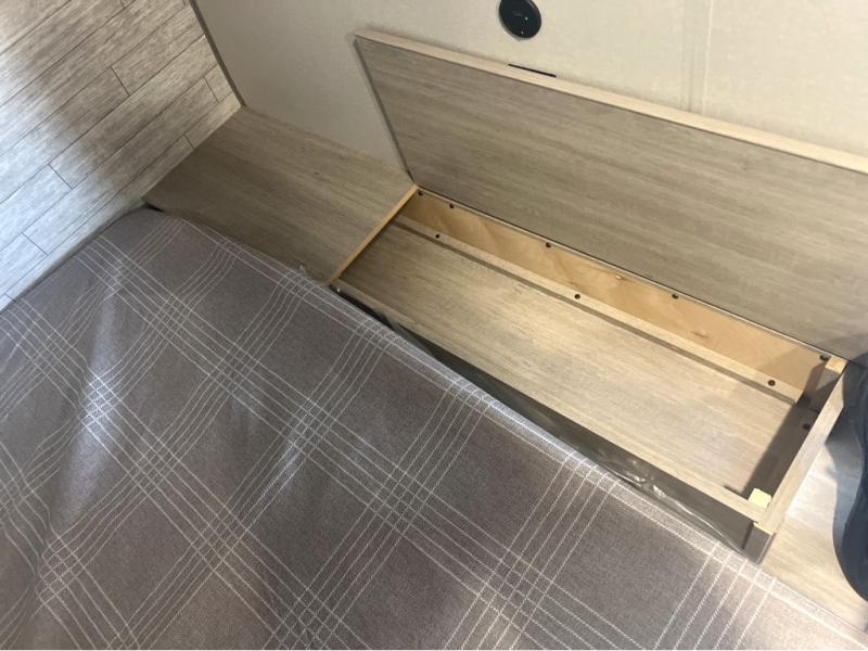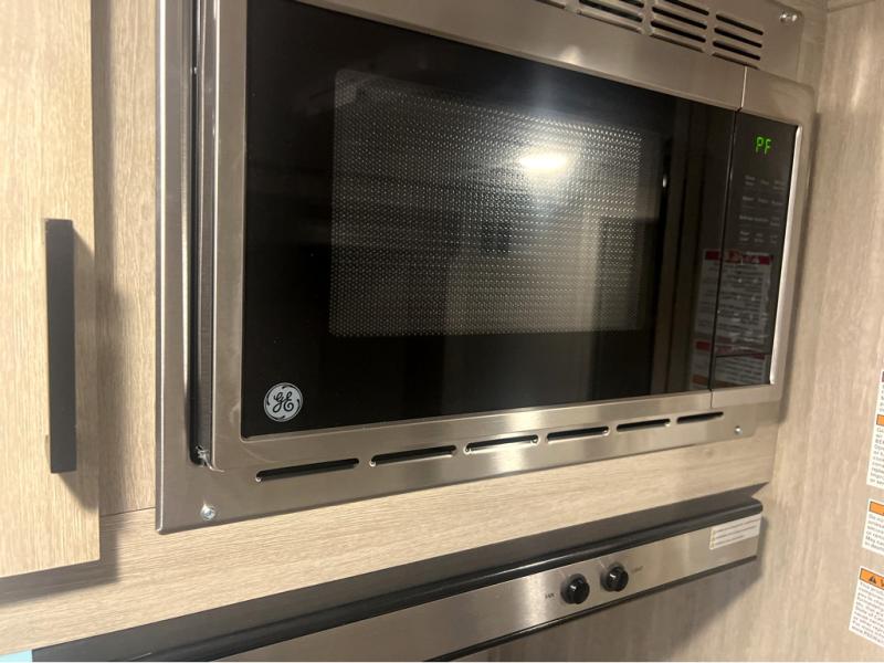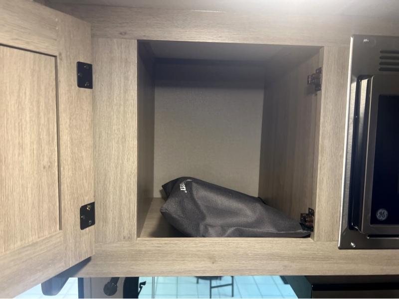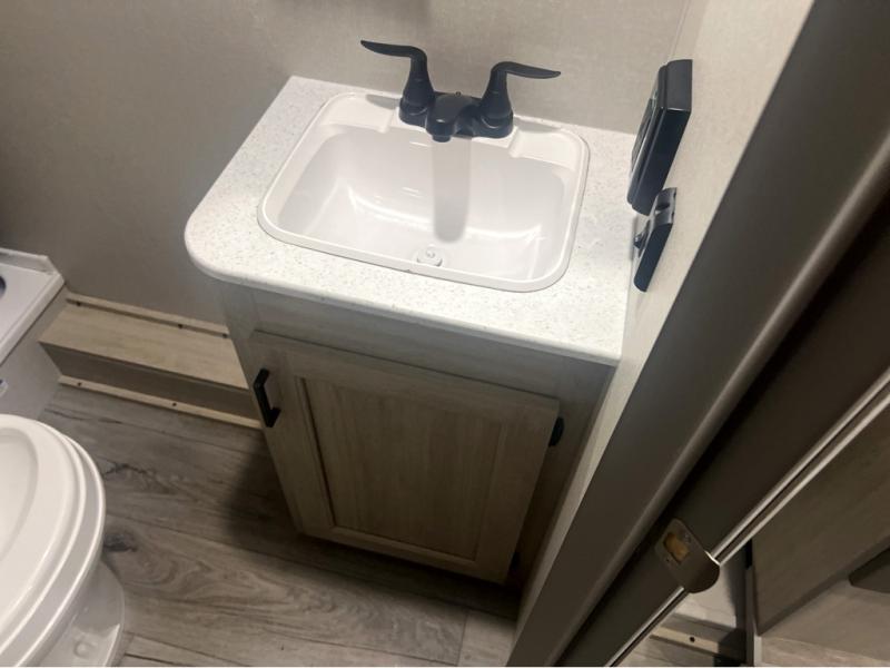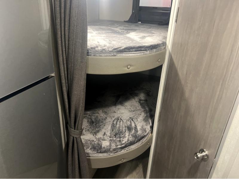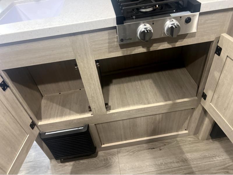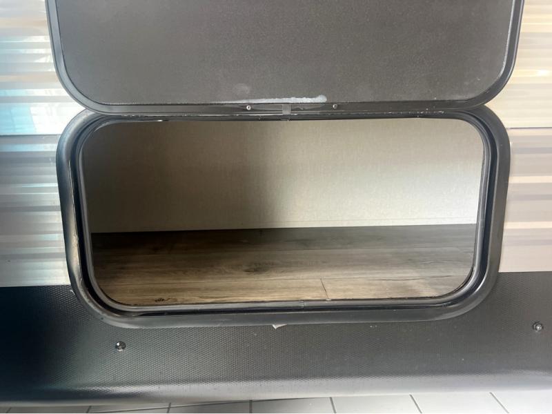 This spacious travel trailer can sleep eight campers each night thanks to the double-size bunks in the back, the U-shaped dinette within the slide out, and the queen bed up front! You can easily make meals for your crew with the two burner cooktop and microwave oven, and leftovers can go in the 10.7 cu. ft. 12V refrigerator! After you've cleaned up in the full bath, head outdoors to relax under the 15' power awning with multicolor LED lights and a remote!