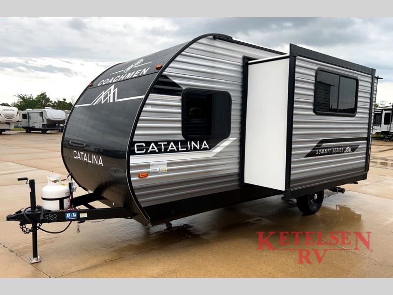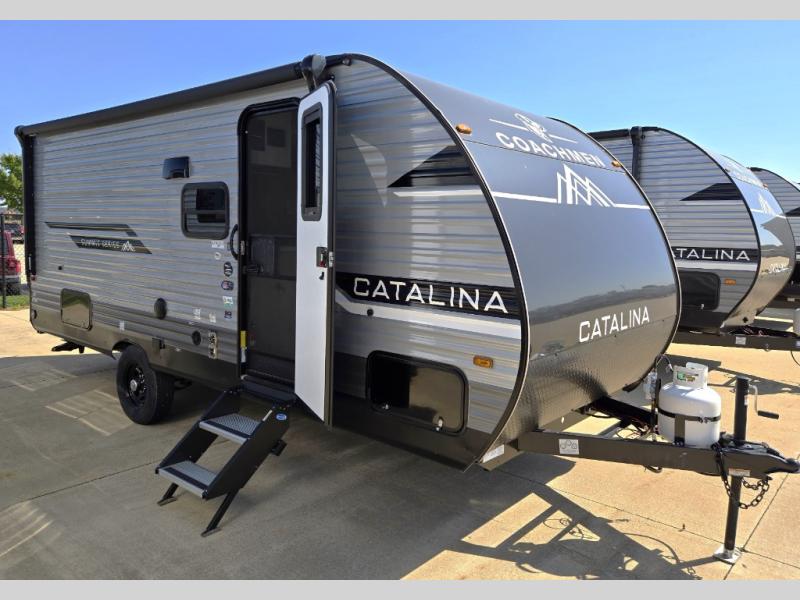 With any Catalina Summit Series 7' by Coachmen RV, you can create an easier adventure with the versatility and simplicity of the shorter lengths and lighter weights! Each includes a premium exterior graphics package, a smooth HD aluminum radius front, and EZ lube axles with leaf spring suspension. The exterior offers a heavy duty standard tongue jack, a diamond plate rock guard to protect against road debris, exterior RG-6 coax cabling and satellite prep, rear view camera prep, and flush mount baggage doors with radius corners for your outdoor gear. Inside, you will enjoy a premium JBL interior speaker, USB charging ports, seamless Thermofoil countertops throughout, a deep basin farm style sink for easy cleanup, and GE kitchen appliances. It's time to choose an affordable and maneuverable single axle trailer today!