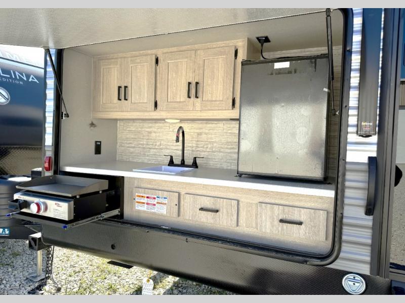Each Catalina Legacy travel trailer by Coachmen is constructed with a cambered structural steel I-beam frame for added strength and support, plus an enclosed and fully sealed corrugated underbelly to extend your camping season. There is also a seamless Alpha roof membrane, R-7 insulation throughout, full length frame outriggers, plus many more durable construction materials. You will love the 6' 9" interior height, along with Congoleum woodplank linoleum flooring, seamless Thermofoil countertops, and hard valance window treatments. Choose a Catalina Legacy today!