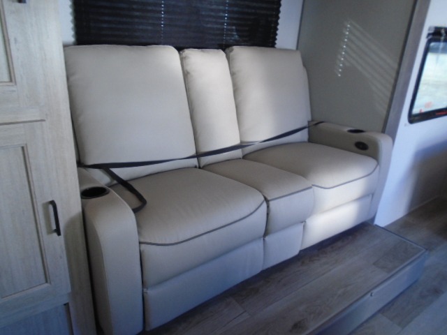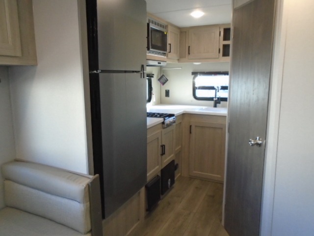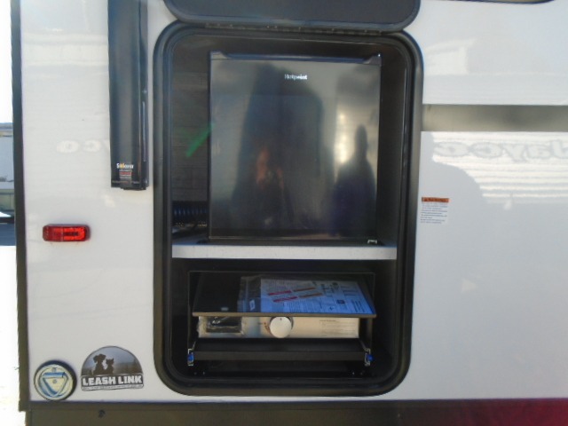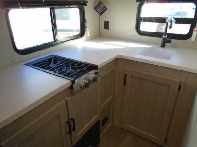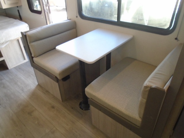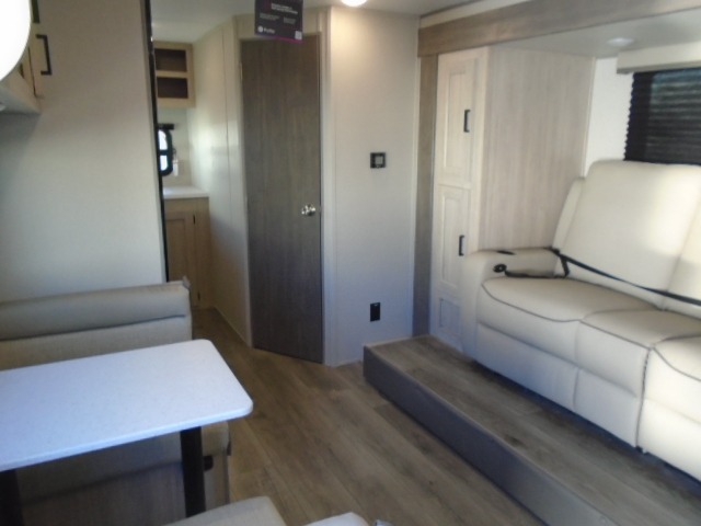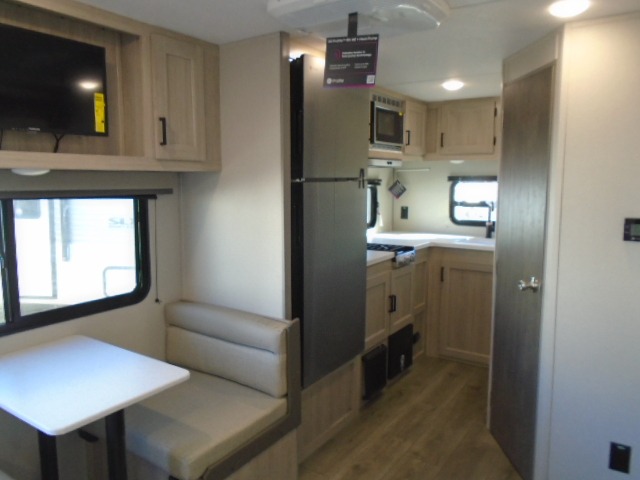 You will love how conventional this travel trailer is! If you want to travel for just a weekend or even more, you won't have to worry since you have all the amenities you need. This model has a queen bed with dual end wardrobes for some extra storage so you can neatly store your clothes. There is also a slide with theater seating, and a booth dinette to enjoy your favorite breakfast. A rear corner kitchen features everything you need to cook indoors, or you can head outside to use the outdoor Camper Kitchen with mini fridge and griddle. A rear corner bath features a 24" x 32" shower, toilet and sink. Outside, you'll find a 17' power awning with multicolor LED lights and exterior storage for camp gear.