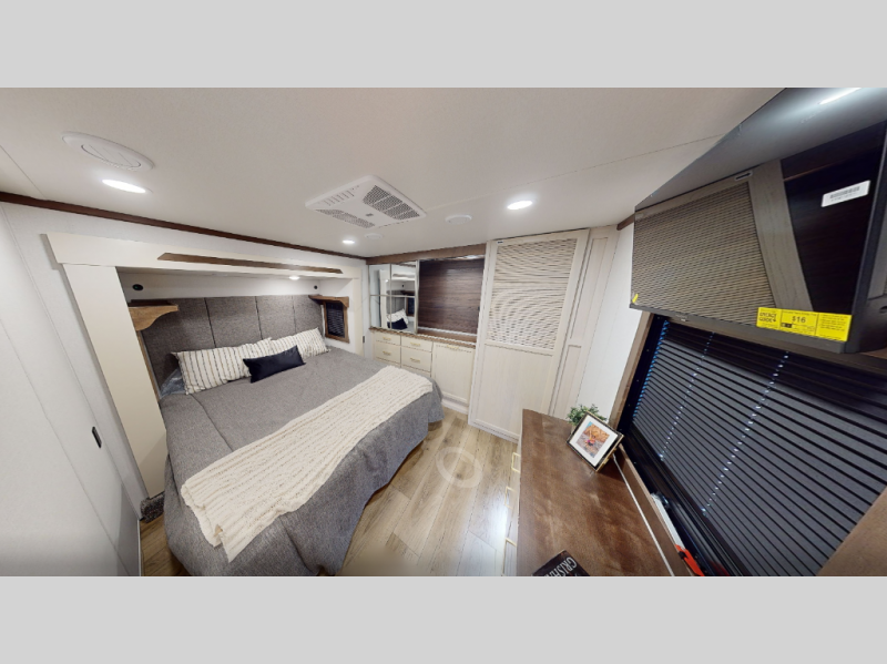 With any Cedar Creek fifth wheel by Forest River, you will find a quality-built RV with your comfort in mind! The all-aluminum super structure on 16" centers or less will provide a solid foundation to your fifth wheel, and the 3M bonded sidewalls will hold up and provide resistance to UV, heat, cold moisture, and even highway chemicals. Each model also includes a Road Warrior suspension for smooth towing, a 6-Point Hydraulic, GEN 3 Leveling System, and a new 101" wide body frame. Inside, you'll enjoy walnut/two tone wooden cabinetry with hidden hinges, cutting board drawer with cut-out trash funnel, motion lighting in the bath and bedroom closet, plus many more comforts. The New Travelfi™ Pay-as-you go internet provides the ability to bring your own internet rather than relying solely on campground WiFi, and the "Rich Solar" 200W solar panel will give you off-grid capabilities!