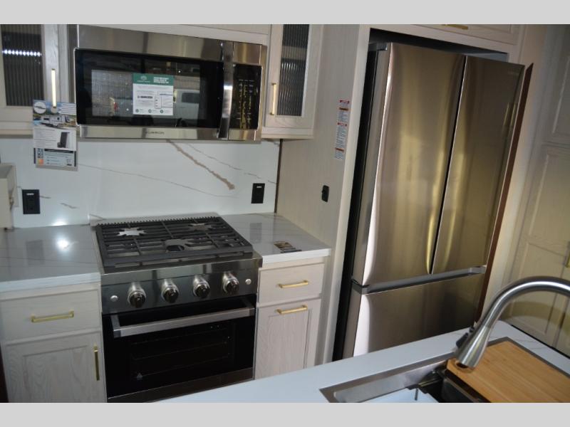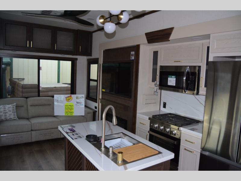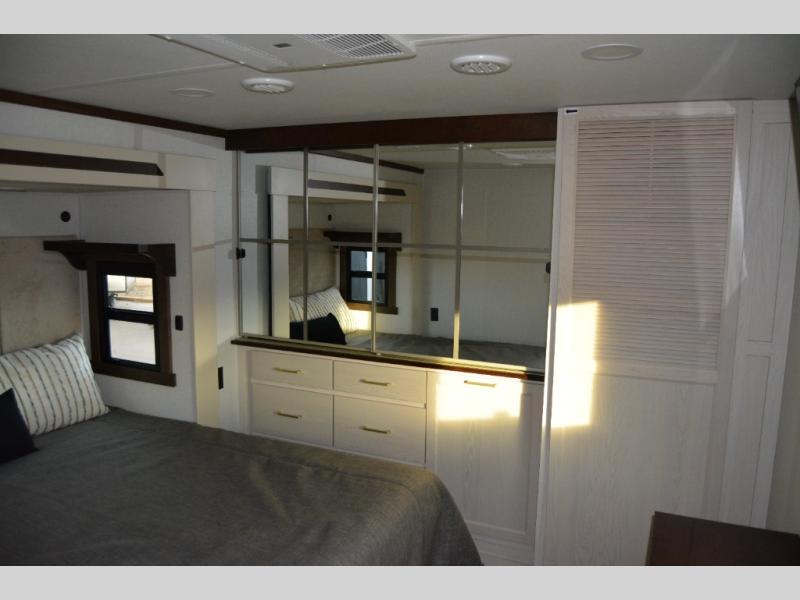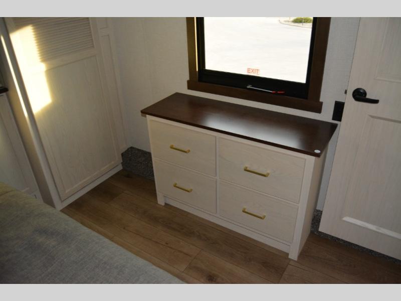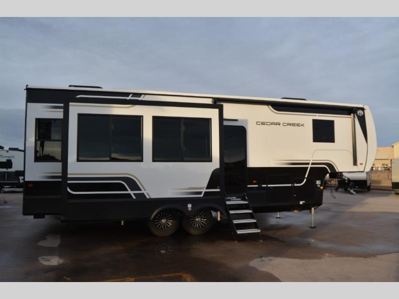 With any Cedar Creek fifth wheel by Forest River, you will find a quality-built RV with your comfort in mind! The all-aluminum super structure on 16" centers or less will provide a solid foundation to your fifth wheel, and the 3M bonded sidewalls will hold up and provide resistance to UV, heat, cold moisture, and even highway chemicals. Each model also includes a Road Warrior suspension for smooth towing, a 6-Point Hydraulic, GEN 3 Leveling System, and a new 101" wide body frame. Inside, you'll enjoy walnut/two tone wooden cabinetry with hidden hinges, cutting board drawer with cut-out trash funnel, motion lighting in the bath and bedroom closet, plus many more comforts. The New Travelfi™ Pay-as-you go internet provides the ability to bring your own internet rather than relying solely on campground WiFi, and the "Rich Solar" 200W solar panel will give you off-grid capabilities!