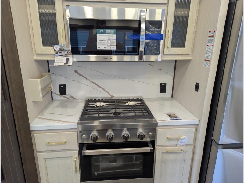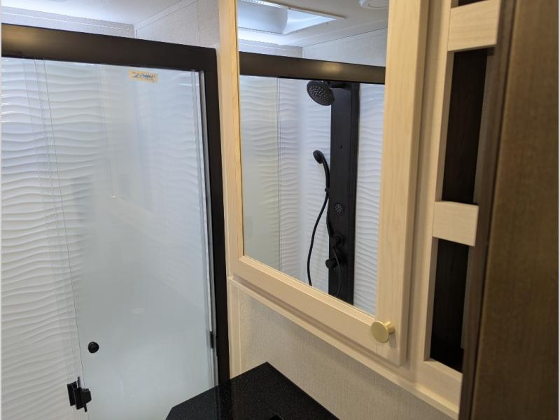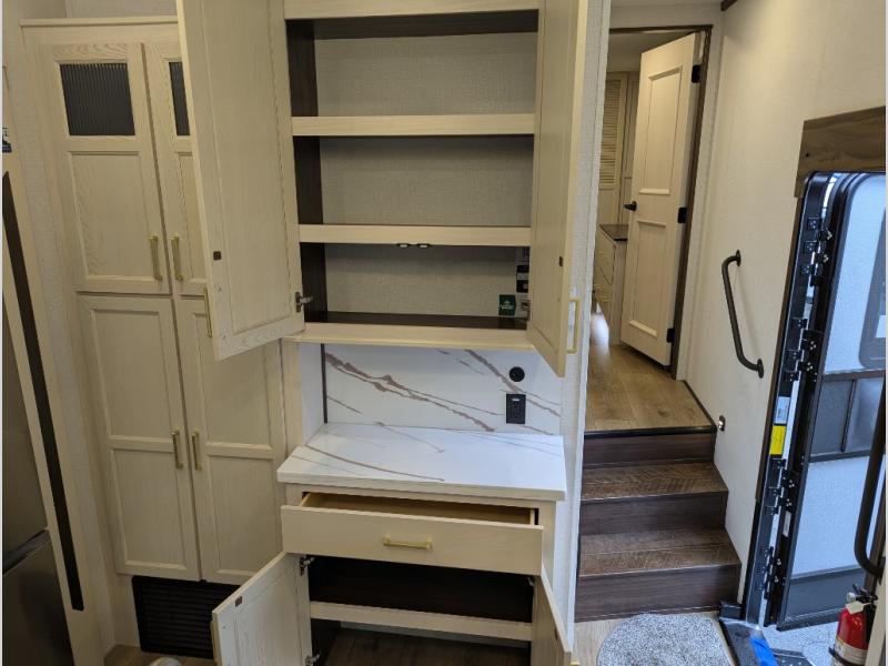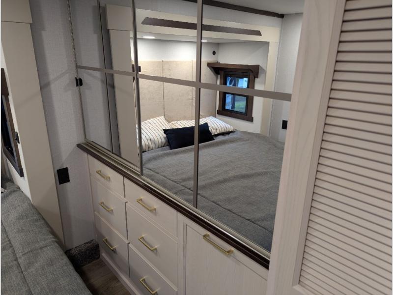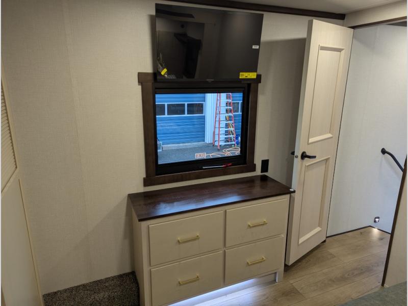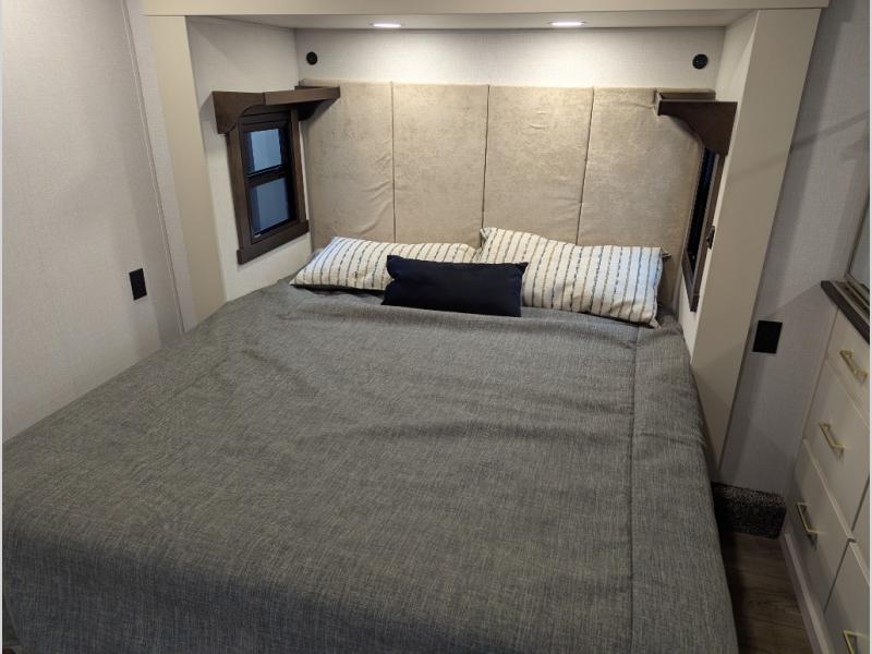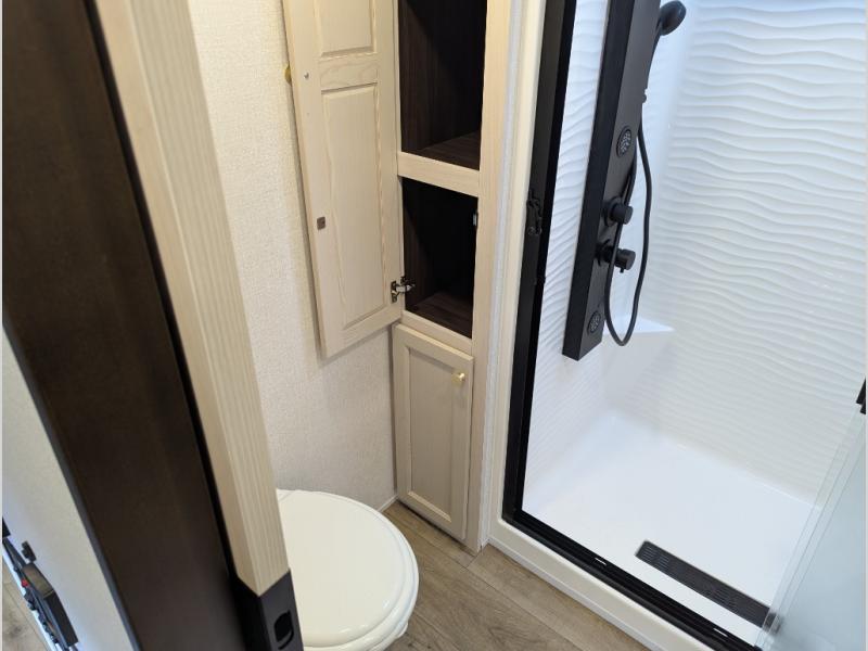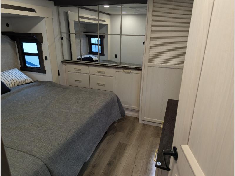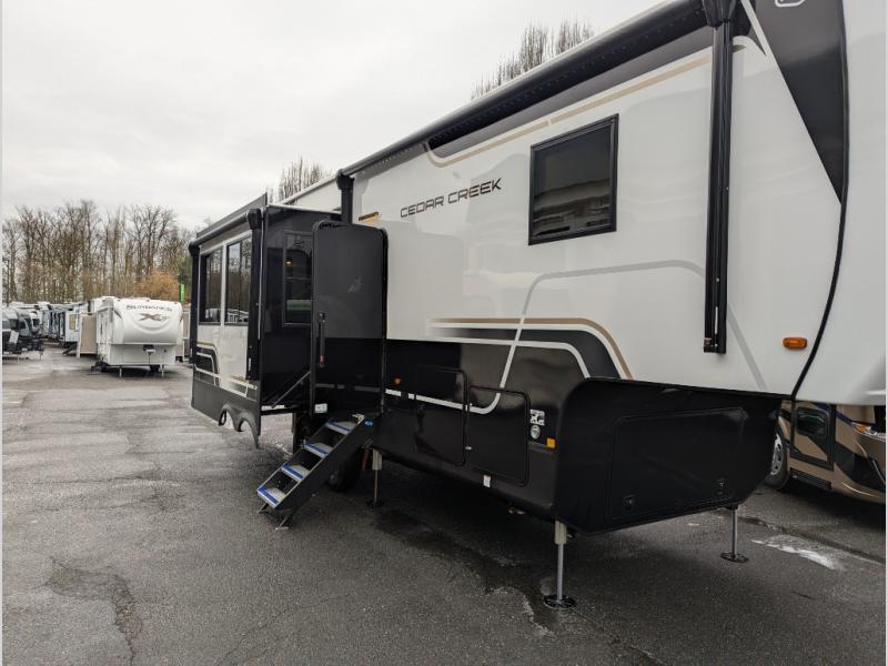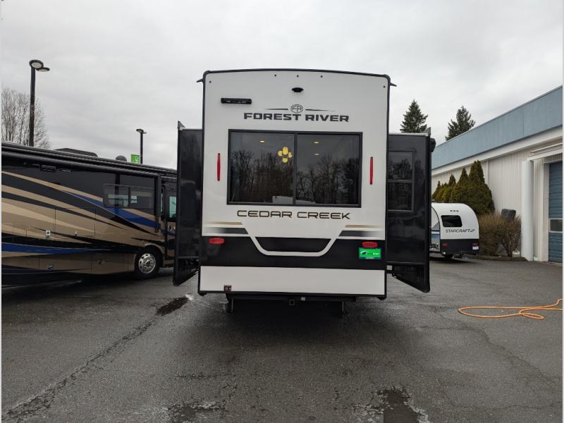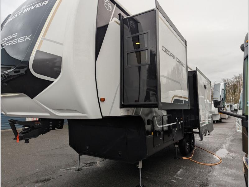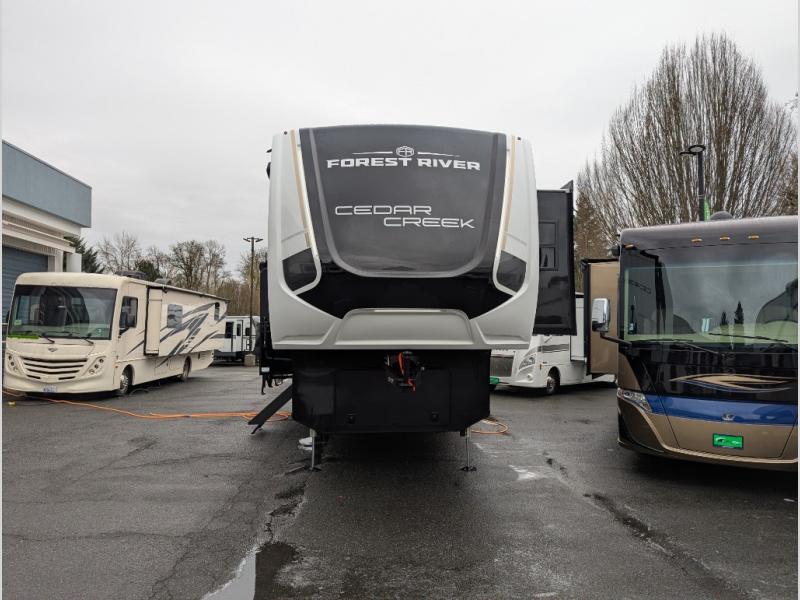With any Cedar Creek fifth wheel by Forest River, you will find a quality-built RV with your comfort in mind! The all-aluminum super structure on 16" centers or less will provide a solid foundation to your fifth wheel, and the 3M bonded sidewalls will hold up and provide resistance to UV, heat, cold moisture, and even highway chemicals. Each model also includes a Road Warrior suspension for smooth towing, a 6-Point Hydraulic, GEN 3 Leveling System, and a new 101" wide body frame. Inside, you'll enjoy walnut/two tone wooden cabinetry with hidden hinges, cutting board drawer with cut-out trash funnel, motion lighting in the bath and bedroom closet, plus many more comforts. The New Travelfi™ Pay-as-you go internet provides the ability to bring your own internet rather than relying solely on campground WiFi, and the "Rich Solar" 200W solar panel will give you off-grid capabilities!