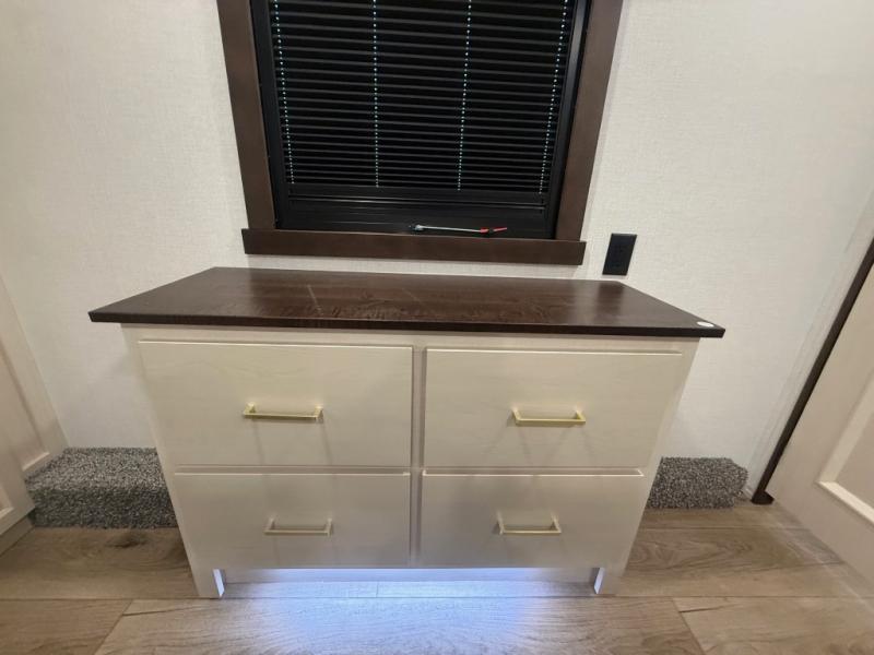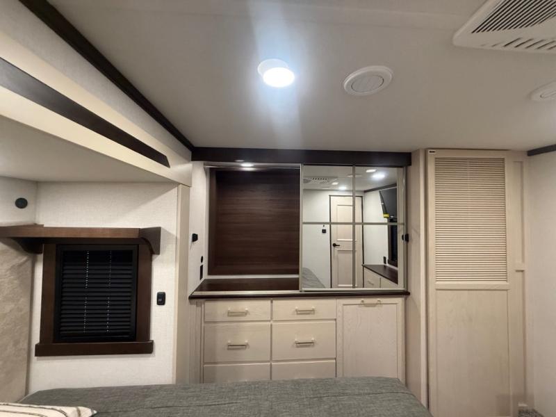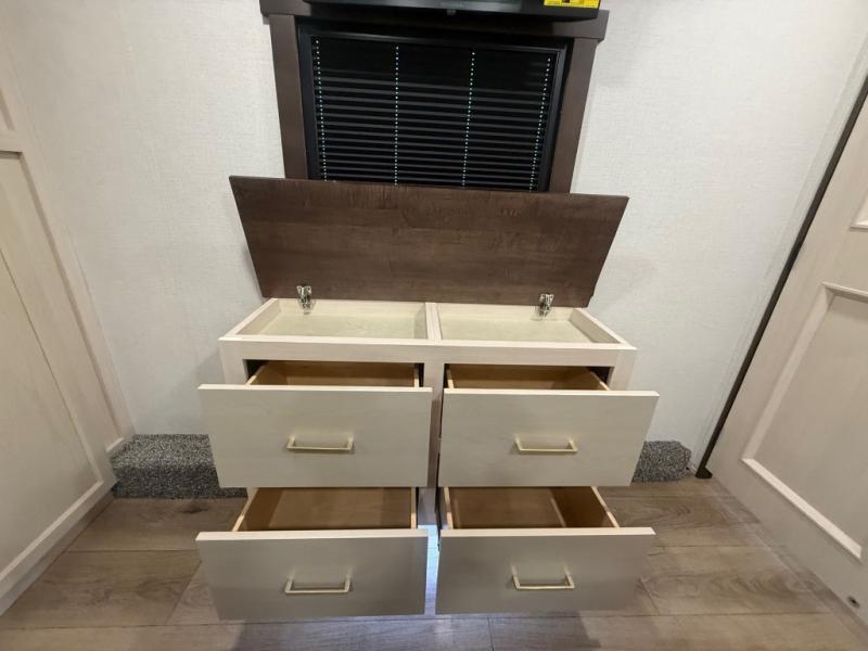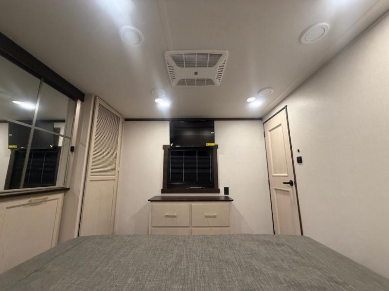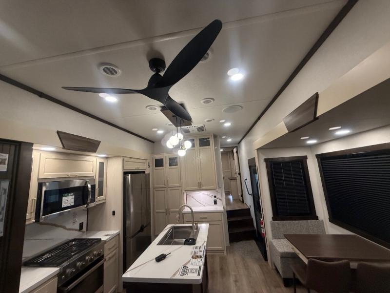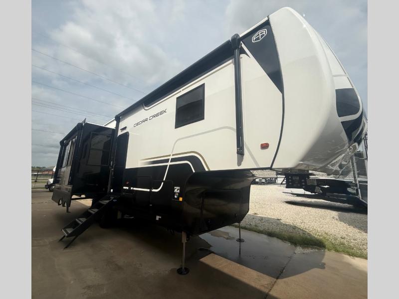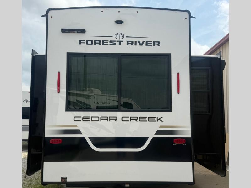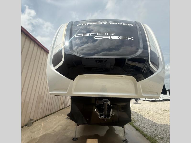 With any Cedar Creek fifth wheel by Forest River, you will find a quality-built RV with your comfort in mind! The all-aluminum super structure on 16" centers or less will provide a solid foundation to your fifth wheel, and the 3M bonded sidewalls will hold up and provide resistance to UV, heat, cold moisture, and even highway chemicals. Each model also includes a Road Warrior suspension for smooth towing, a 6-Point Hydraulic, GEN 3 Leveling System, and a new 101" wide body frame. Inside, you'll enjoy walnut/two tone wooden cabinetry with hidden hinges, cutting board drawer with cut-out trash funnel, motion lighting in the bath and bedroom closet, plus many more comforts. The New Travelfi™ Pay-as-you go internet provides the ability to bring your own internet rather than relying solely on campground WiFi, and the "Rich Solar" 200W solar panel will give you off-grid capabilities!