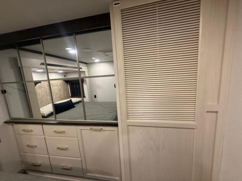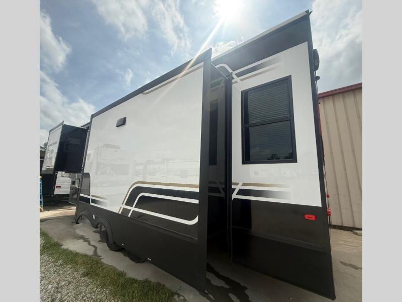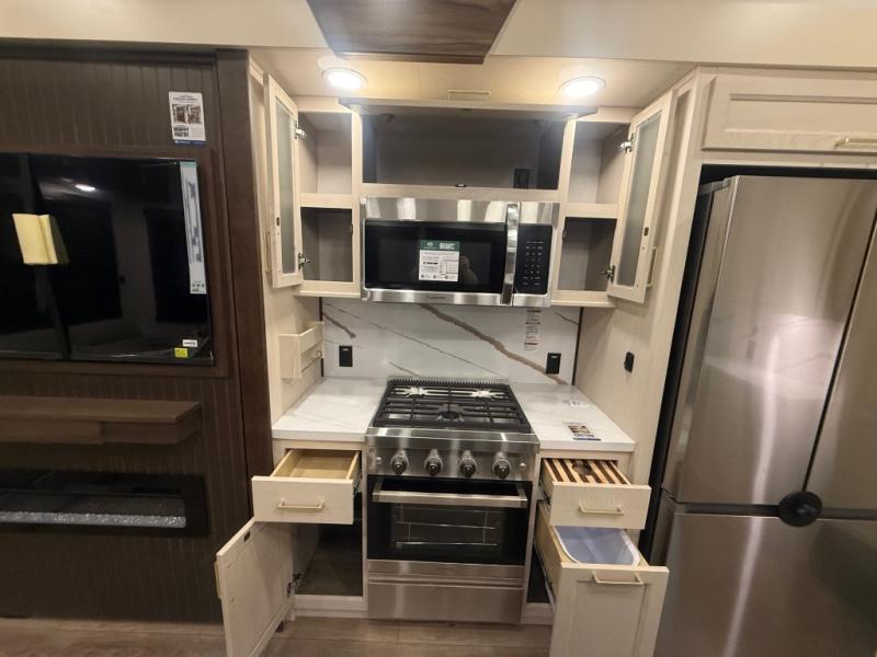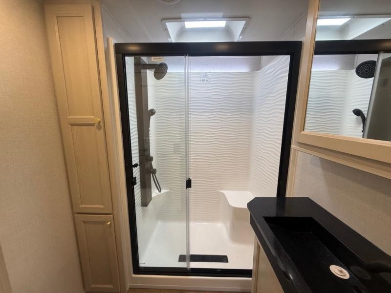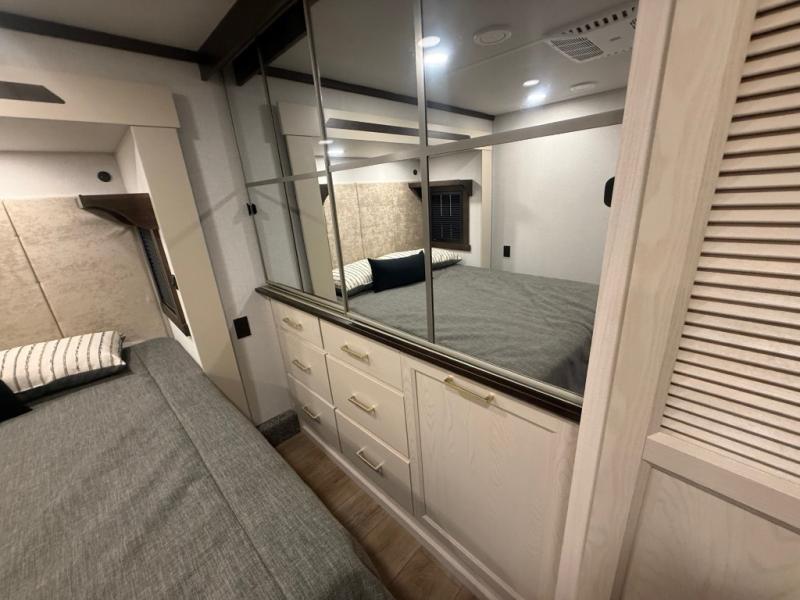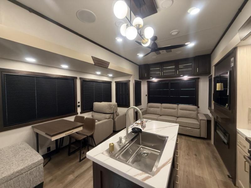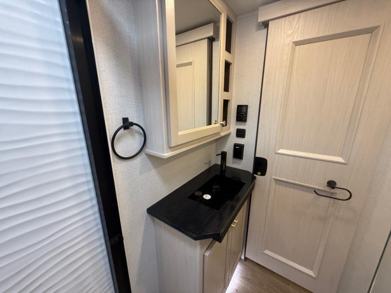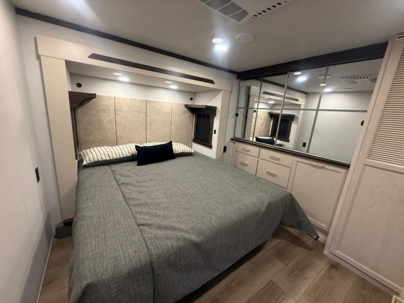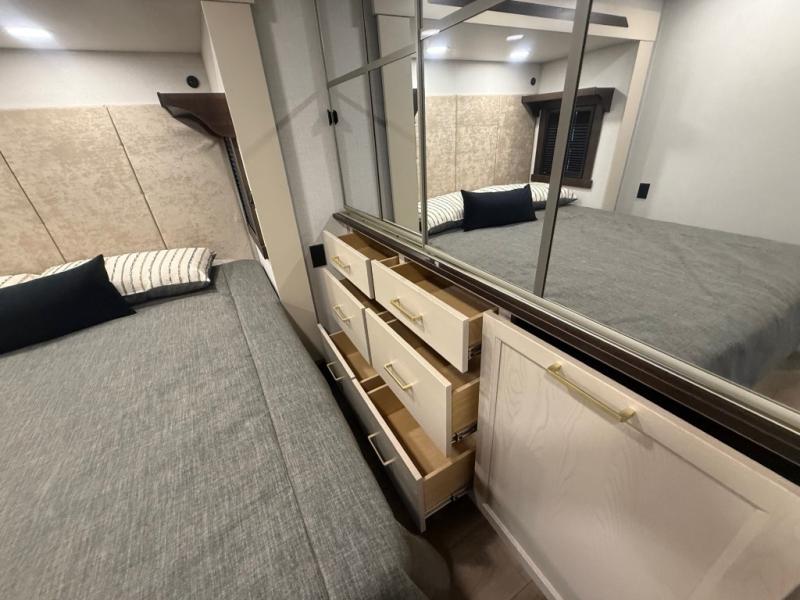 With any Cedar Creek fifth wheel by Forest River, you will find a quality-built RV with your comfort in mind! The all-aluminum super structure on 16" centers or less will provide a solid foundation to your fifth wheel, and the 3M bonded sidewalls will hold up and provide resistance to UV, heat, cold moisture, and even highway chemicals. Each model also includes a Road Warrior suspension for smooth towing, a 6-Point Hydraulic, GEN 3 Leveling System, and a new 101" wide body frame. Inside, you'll enjoy walnut/two tone wooden cabinetry with hidden hinges, cutting board drawer with cut-out trash funnel, motion lighting in the bath and bedroom closet, plus many more comforts. The New Travelfi™ Pay-as-you go internet provides the ability to bring your own internet rather than relying solely on campground WiFi, and the "Rich Solar" 200W solar panel will give you off-grid capabilities!